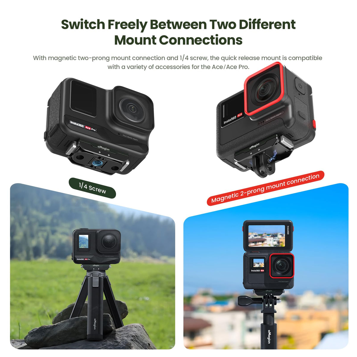 Gaekol Insta360 Ace Pro Quick Release Mount, Snap On Magnetic 2 Prong Mount And 1/4 Thread Mount For Insta360 Ace Pro / Insta360