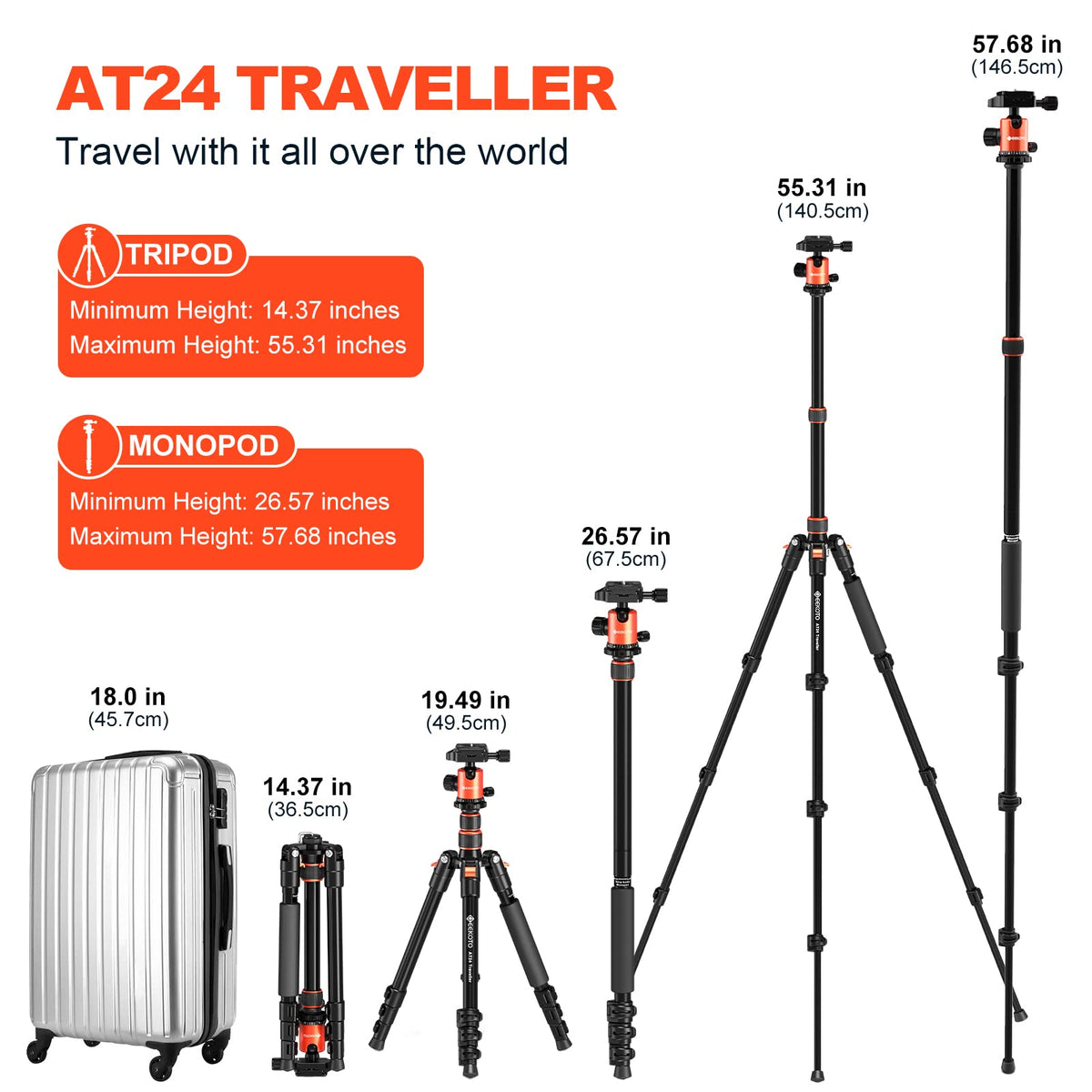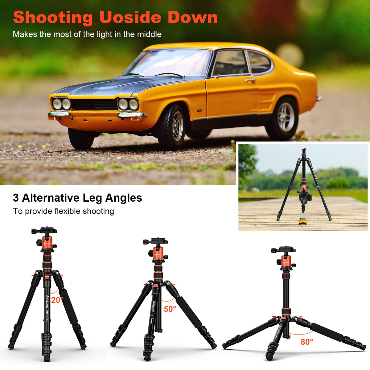 Extremely Light! It Is Easy To Stick Into Your Backpack For Travel And Work. Free Your Hands! Geekoto At24 Traveller Tripod Is The Best Companion For You To Go Out And Shoot.