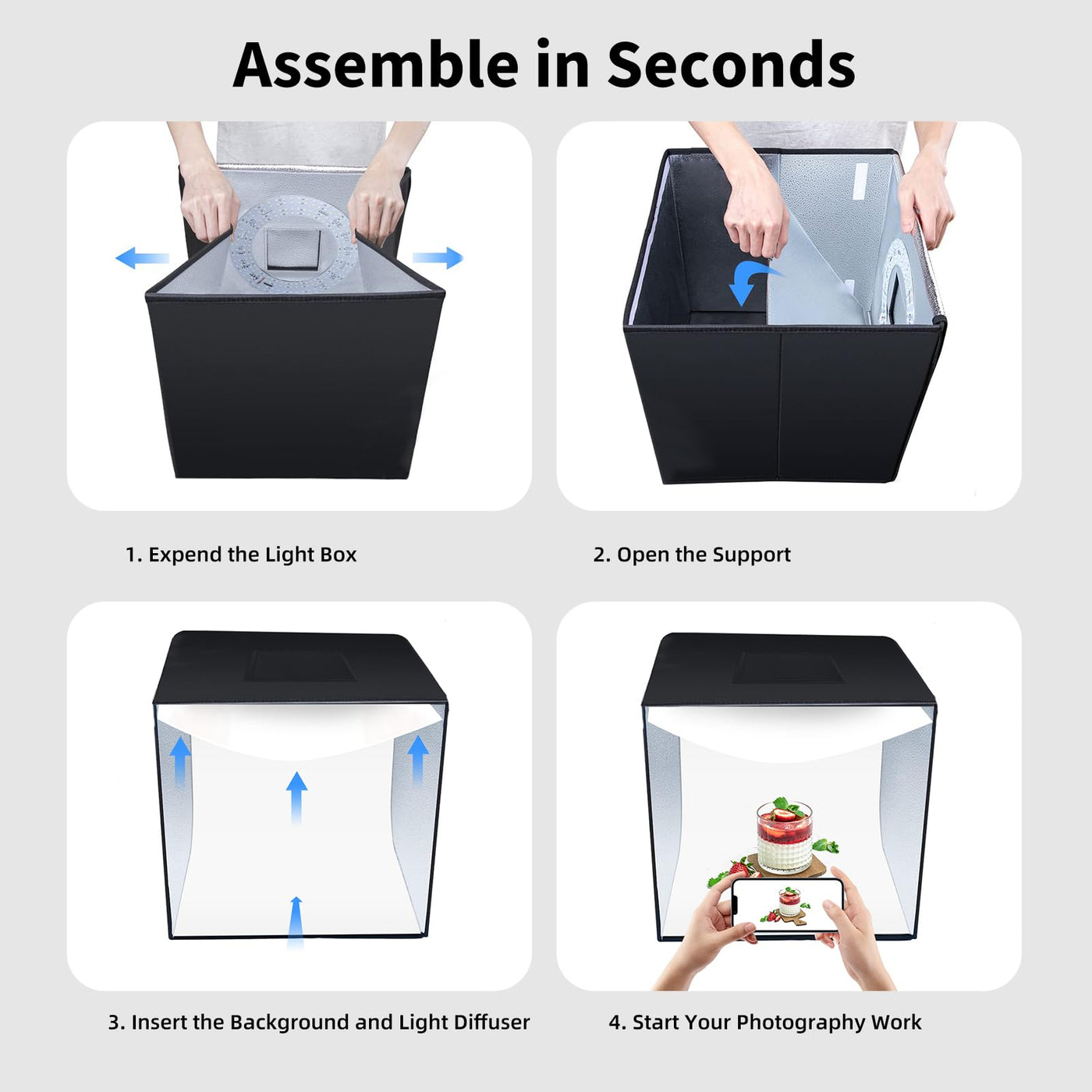 Glendan Light Box Photography, 16''X16'' Portable Photo Light Box With 112 Led Lights & 6 Kinds Of Double Sided Color Backdrops