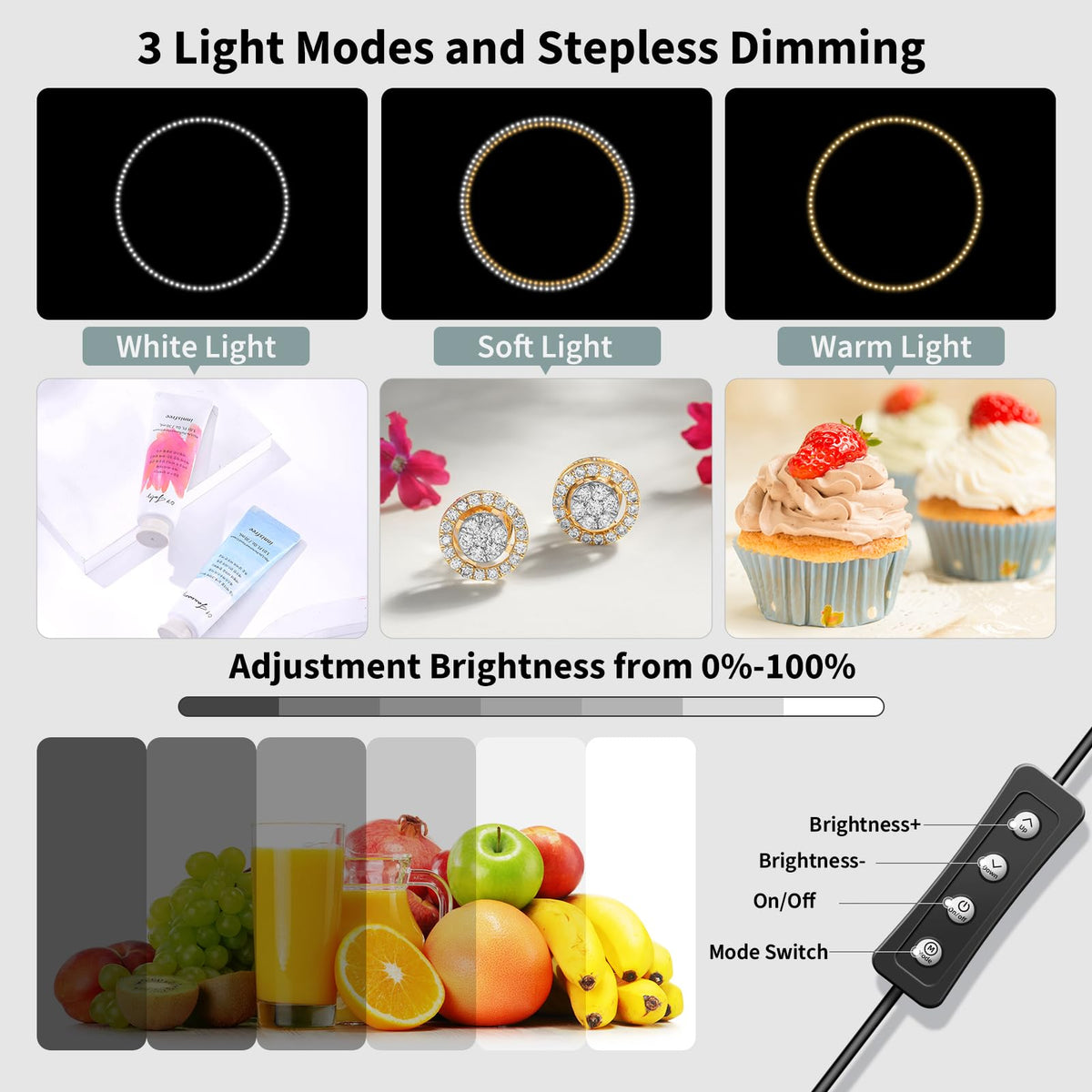 ?Stepless Dimming & High Cri?Integrate 216 High-Quality Led Light Beads With Dimmable Range 0-100, You Can Easily Adjust The Brightness To Get The Desired Lighting Effect. High Color Rendering Index (95+) And No Strobe, Create Brighter And Softer Lights, Help Leave Your Photos Looking More Natural And Great Texture.