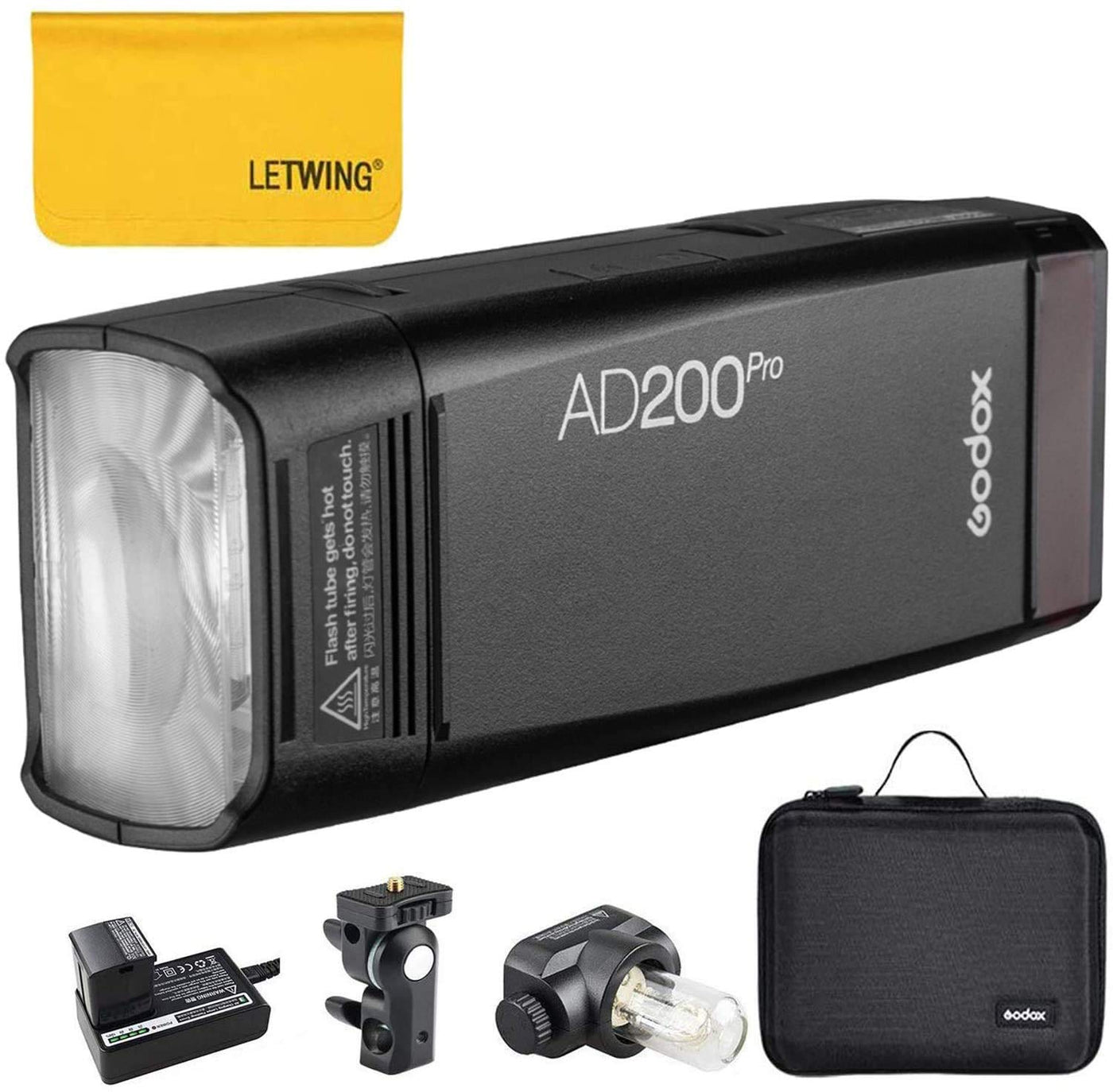 Specifications: Model: Ad200Pro Guide No. (1/1 Output):Speedlite Flash Head: 52 (M Iso 100, @35Mm) Guide No. (1/1 Output):Bare Bulb Flash Head: 60 (M Iso 100, With The Ad-S2 Standard Reflector, @28Mm) Flash Duration T.01 (Approx.):Speedlite Flash Head: 1/220 To 1/15380 Seconds Flash Duration T.01 (Approx.):Bare Bulb Flash Head: 1/220 To 1/13510 Seconds Power:200W Power Output:9 Steps: 1/256~1/1 Stroboscopic Flash:Provided (Up To 90 Times, 99Hz) Flash Exposure Compensation (Fec):Manual. Feb: 3 Stops In 1/3 Stop Increments. Sync Mode:High-Speed Sync (Up To 1/8000 Seconds), First-Curtain Sync, And Second-Curtain Sync Delay Flash:0.01~30 Seconds Mask:V Beeper:V Modeling Lamp (Led):V Optic Slave Flash:S1/S2 Flash Duration Indication:V Wireless Flash (2.4G Transmission): Wireless Flash Function:Slave, Off Controllable Slave Groups:5 (A, B, C, D, And E) Transmission Range (Approx.):100M Channels:32 (1~32) Id:01~99 Power Supply: Power Supply:Lithium Battery Pack (14.4V/2900Mah) Full Power Flashes:500 Recycle Time:Approx. 0.01-1.8S Battery Indicator:V Power Indication:Change Within 100K Over The Entire Power Range In Color Temperature Mode Sync Triggering Mode:Power Standby Automatically After Approx. 30 Minutes Of Idle Operation. Color Temperature:3.5Mm Sync Line, Wireless Control Port Stable Color Temperature:5600200K Dimensions: Dimension:172X54X75Mm (Flash Head Not Included) Net Weight:590G (Flash Head & Battery Not Included) Package Includes: 1 X Godox Ad200Pro Small Flash1 X Letwing Cloth 1 X Flash Light Flash Head 1 X Incandescent Head
