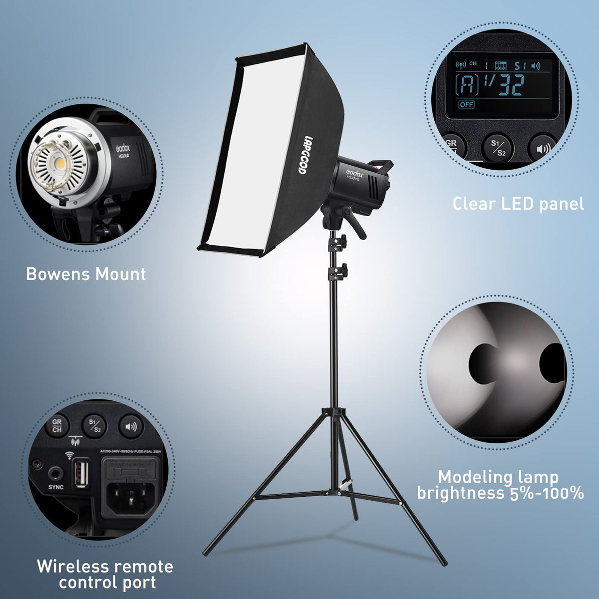 Godox Ms300V Strobe Flash Softbox Kit, With 24''X35'' Softbox & 9.2Ft Light Stand, 5800200K 0.1~1.8S Recycle Time With Led Modeling Lamp, 2 Pack Softbox Lighting For Studio Photography;Godox Ms300;Godox Ms300V;600W;Studio Flash;Monolight,Photography Lighting;Live Light;Studio Lights;Video Conference; Lighting;Photography Light;Standard Reflector Diffuser;Light Reflectors 24;Rectangular Softbox;Stainless Steel Light Stand;Ms300V Strobe Flash; Softbox Kit; Light Stand; 24''X35'' Softbox;