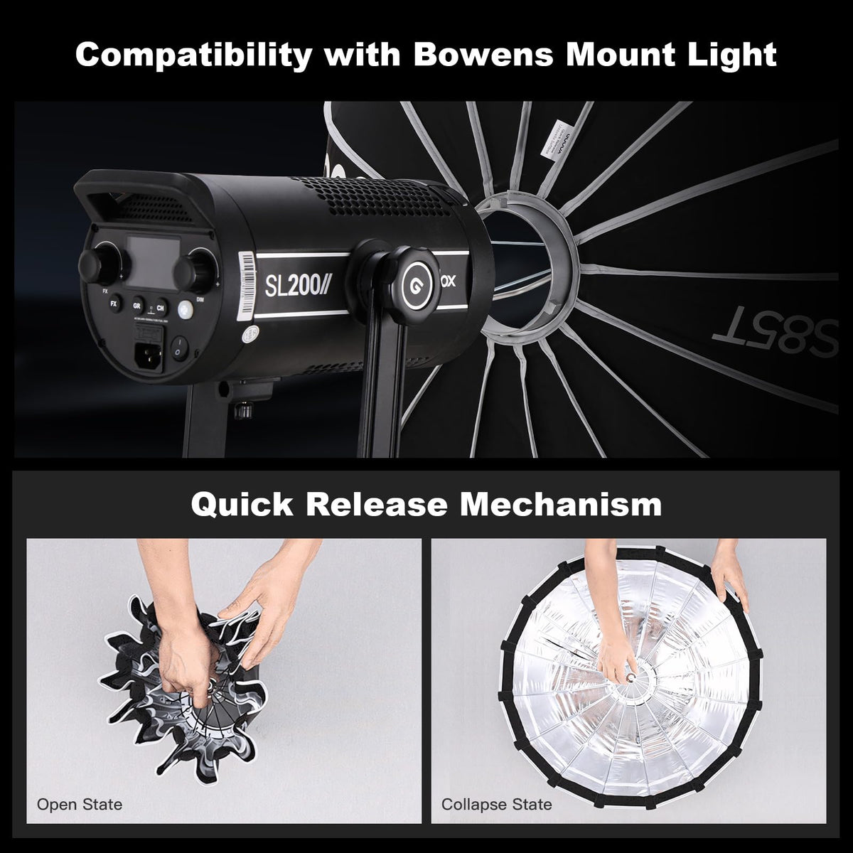 Crafted With A Uniquely Shallow Design, The S65T Boasts A Mere30Cm/11.8Inch Depth, Nearly Half The Depth Of Standard Softboxes.Perfect For Home Studios, Cramped Locations, Or Anywhere Youneed To Make The Most Of Every Inch. Godox Bowens Mount Umbrella Softbox Photography Studio Shooting Compact Travel Outdoor Small Poratble Umbrella Softbox