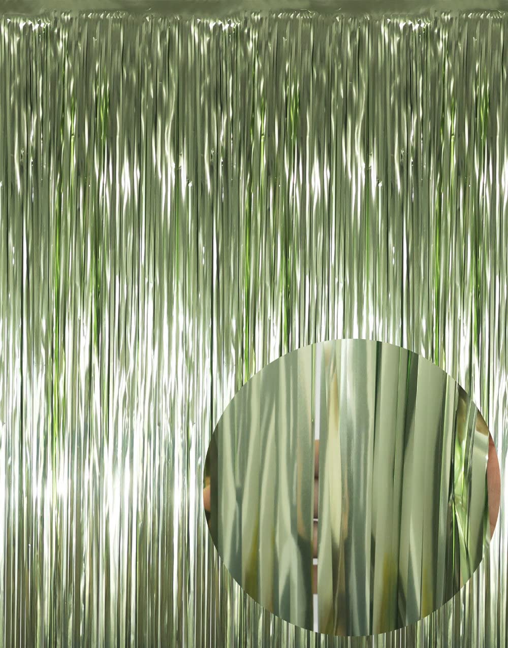 Goer 3.2 Ft X 9.8 Ft Metallic Tinsel Foil Fringe Curtains For Party Photo Backdrop Wedding Decor (1 Pack,Sage Green), One Size