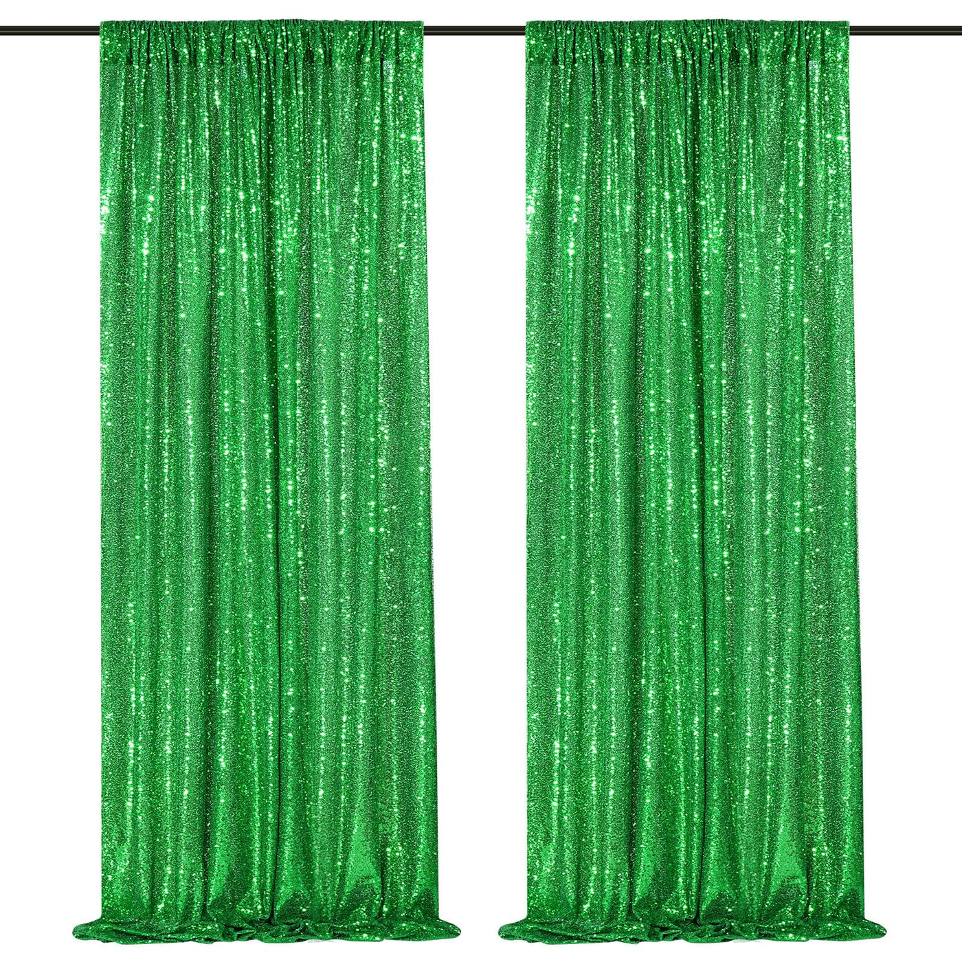 Green Sequin Backdrop Curtains 2 Panels 2Ftx8Ft Christmas Party Backdrop Glitter Birthday Bridal Wedding Curtains Sparkle Photo