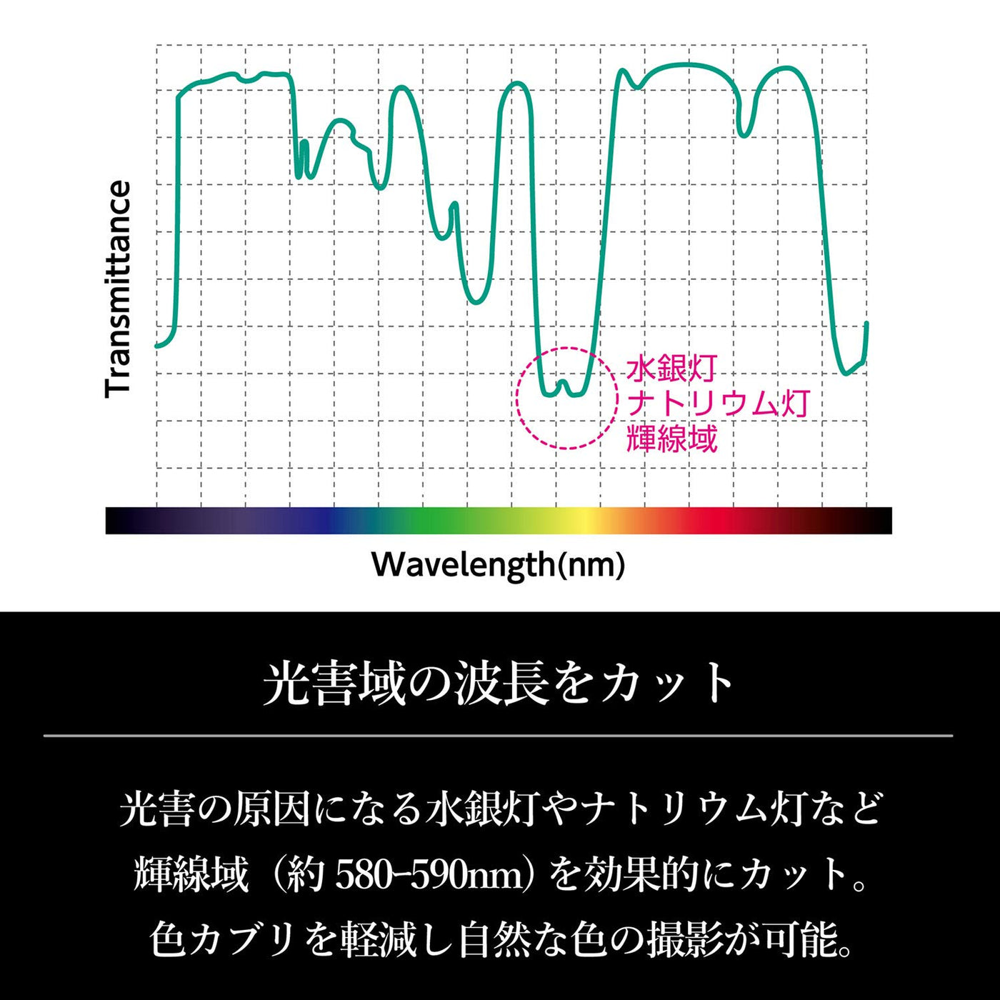 Q: How does the filter affect light transmission for night photography?A: The Haida Slim Nano Pro MC Clear Night Filter has a light transmission rate of approximately 50% to 100% in the blue spectrum and about 90% in the red spectrum. This selectivity helps to reduce unwanted color casts in night images.