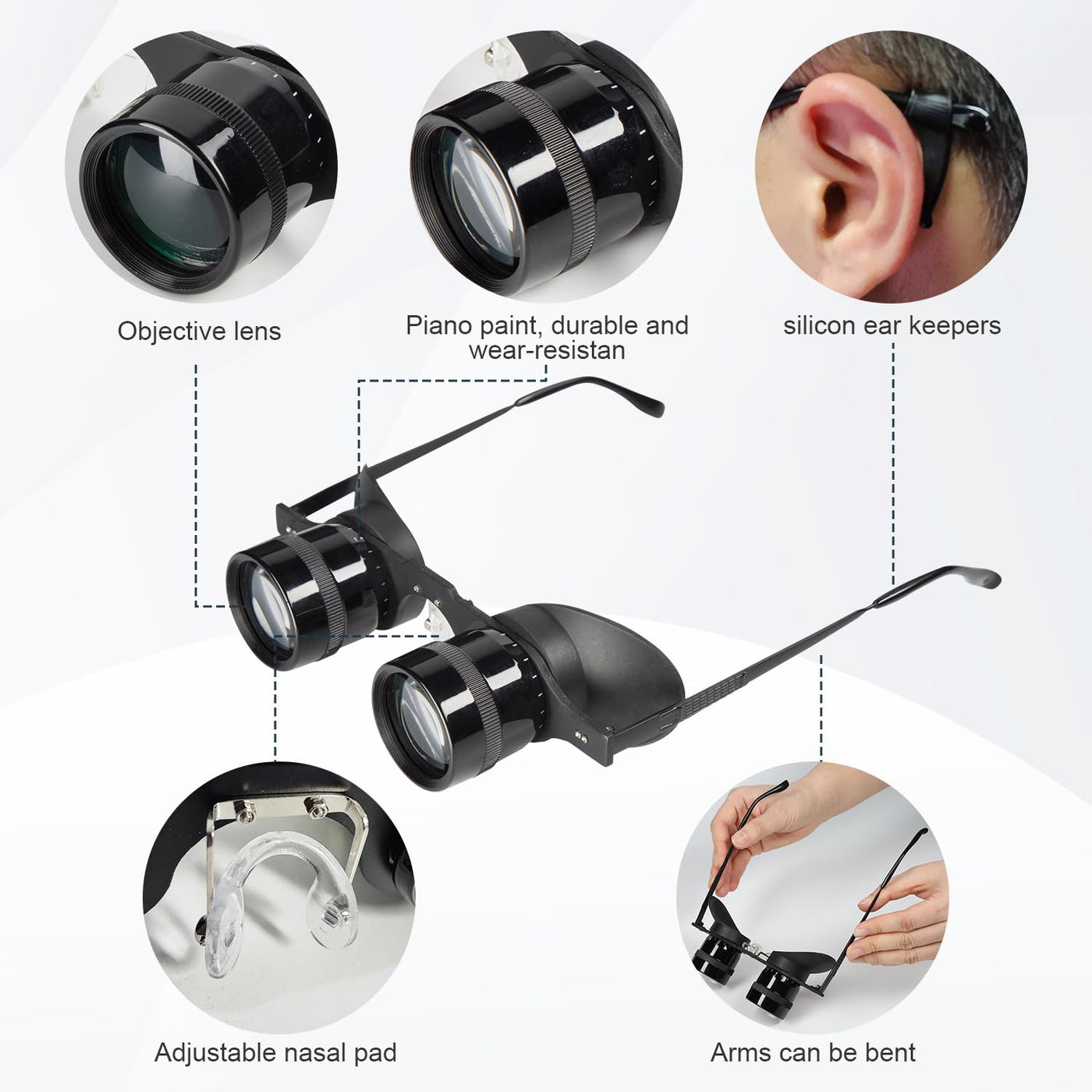 Q: Can I use these binocular glasses for theater and concerts?A: Absolutely! The Hands-Free Binocular Glasses are designed to enhance your viewing experience at theaters and concerts. With their adjustable focus and enhanced optics, they provide a sharp and immersive view, making them ideal for enjoying live performances.