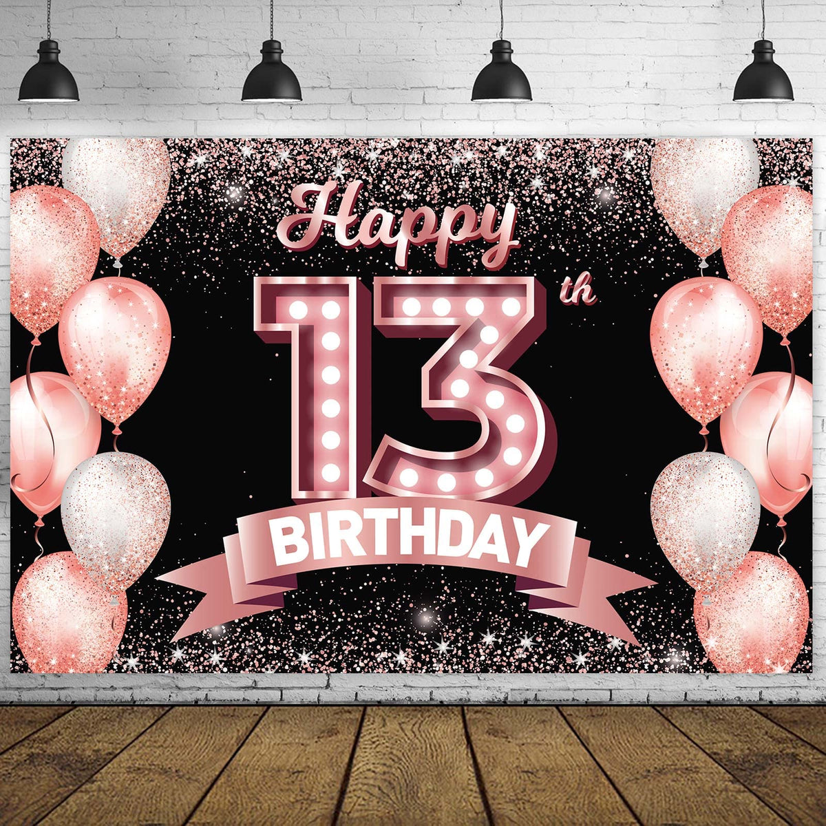 Happy 13Th Birthday Rose Gold Banner Backdrop Cheers To 13 Years Old Confetti Balloons Theme Decor Decorations For Girls 13 Year