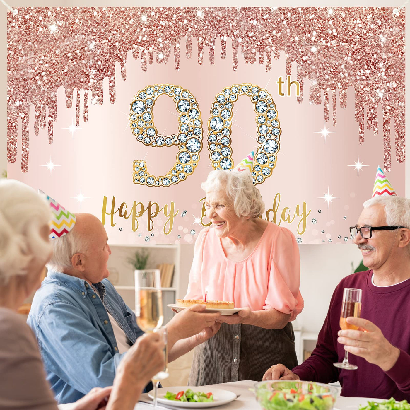 Happy 90Th Birthday Banner Backdrop Decorations For Women Material: High-Quality Polyester Size: 73 X 43 Inches Color: Rose Gold, Pink Easy To Use: Very Easy To Assemble. Our Large Posters Have Copper Holes At Four Corners And Are Equipped With Ropes. You Only Need To Use The Attached Rope To Pass Through The Copper Hole And You Can Easily Hang It Anywhere You Want To Decorate. Wide Use: You Can Hang Them On The Front Door, Porch, Wall, Window, Ceiling, Garden, And Other Places To Decorate The Party. At The Same Time, It Is Also A Good Photography Prop And Photography Background. Package Includes: 1 X Happy 90Th Birthday Banner Backdrop With Ribbon