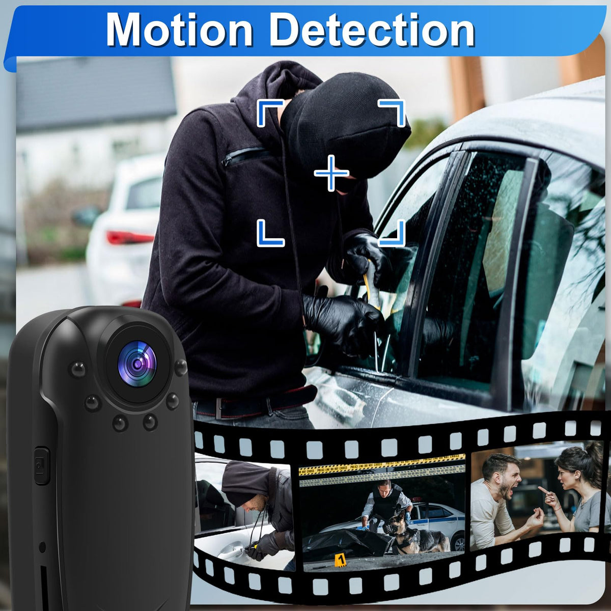 Q: Can I use this camera for motion detection recording?A: Yes, the HKFUG Mini Body Camera includes a smart motion detection mode that records only when movement is detected, helping to conserve battery life and storage space while ensuring important actions are captured.