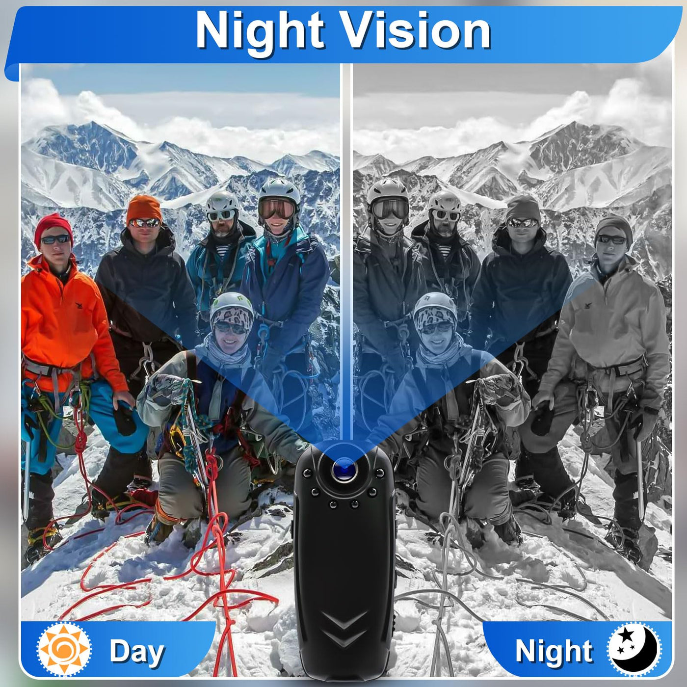 Q: How does the night vision feature work on this body camera?A: This body camera is equipped with 6 night vision lights, which allow it to operate effectively in low-light conditions. You can activate the night vision mode with a simple one-click switch, ensuring safety during night use.
