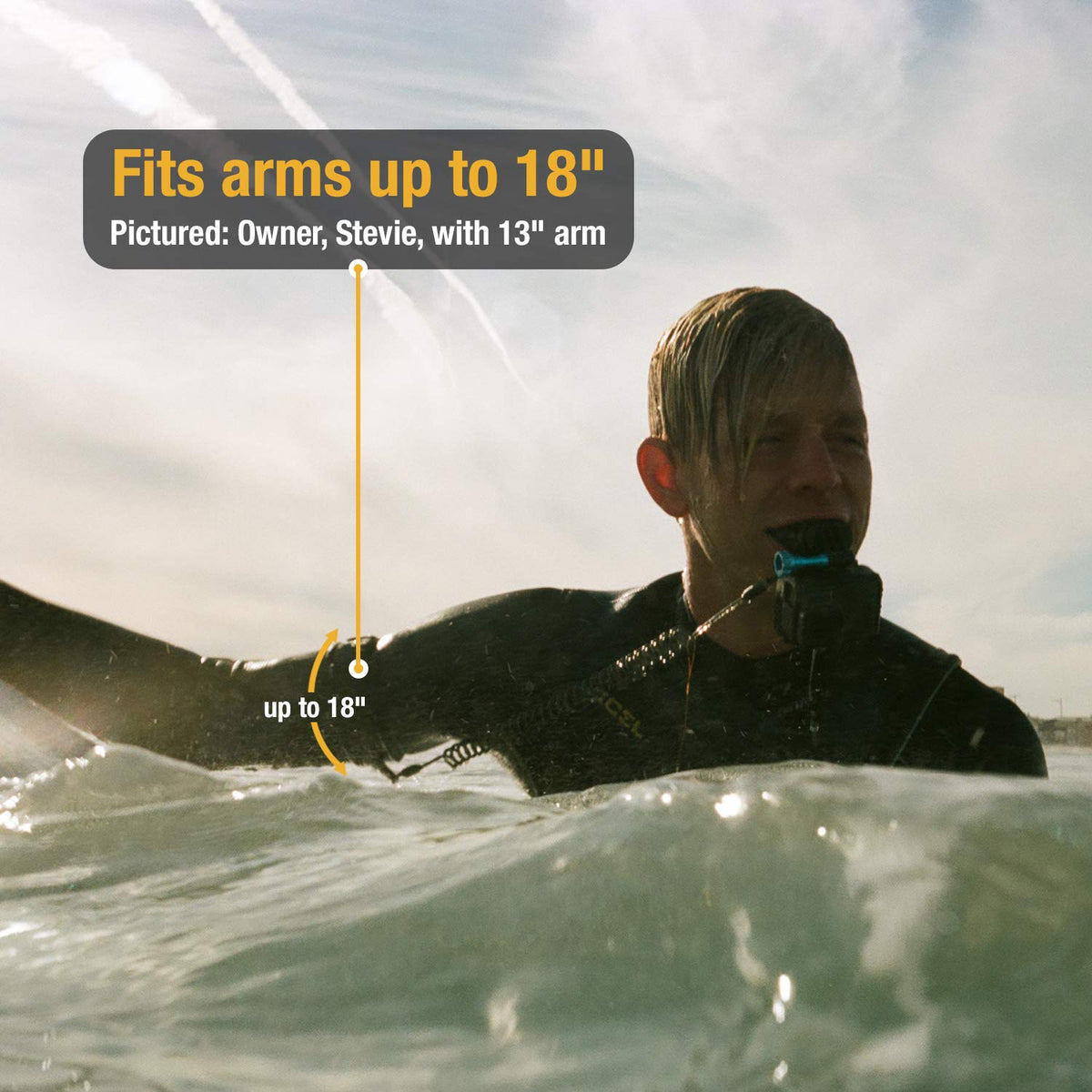 Other Leashes Can Fall Into The Frame Of Your Shot, But Our Leash Stays Coiled And Out Of View. Leash Is Approximately 9 Inches Long Unstretched, And 5 Feet Long When Fully Stretched. This Allows You To Pull The Gopro Out Of Your Mouth Mid-Wave For A Selfie, While Staying Secured To Your Arm. Great For Surfing, Wakeboarding, Or Any Other Time You Use A Mouth Mount With Your Gopro. Join Thousands Of Ho Stevie! Fans, And Keep Your Gopro Safe With This Armband Leash.