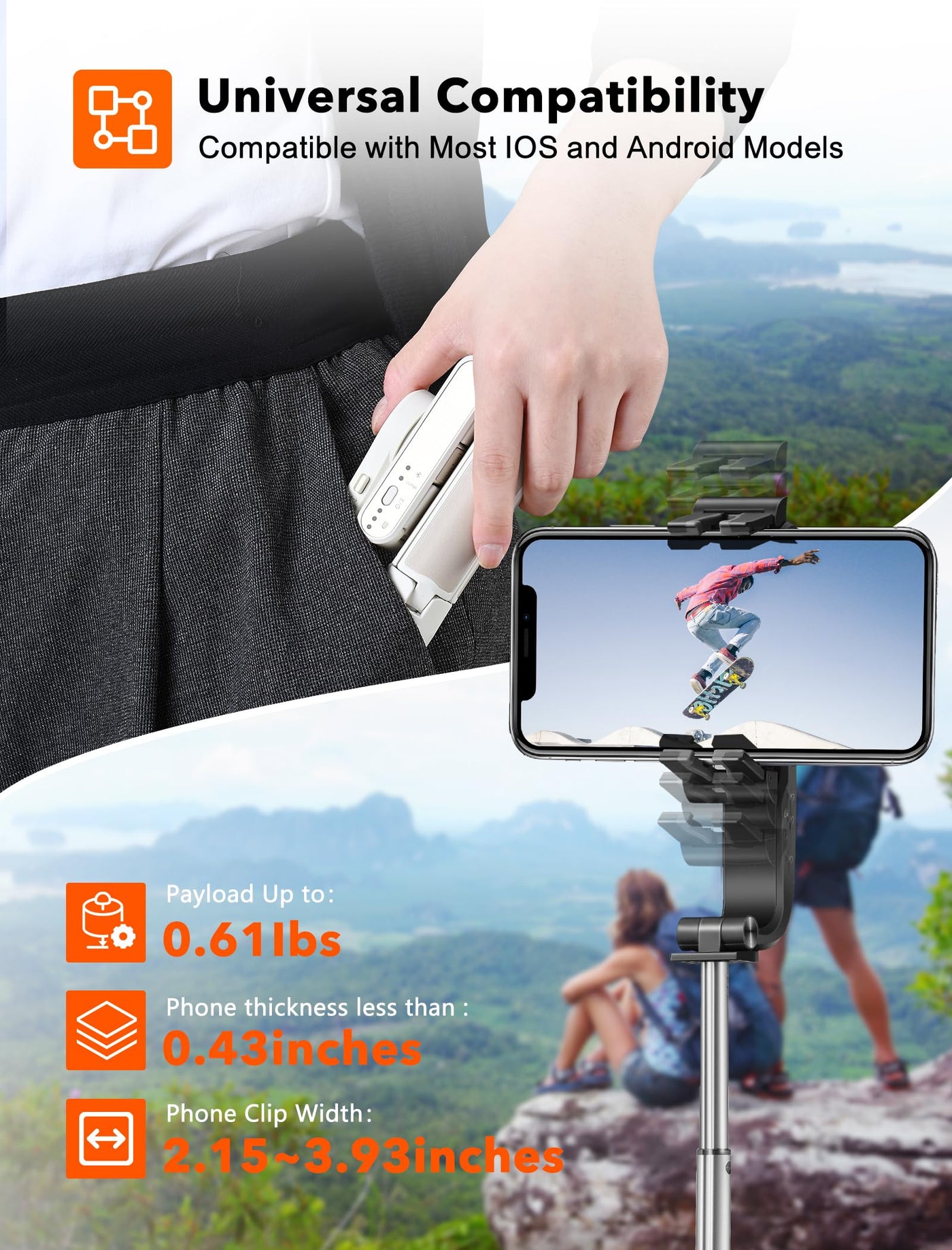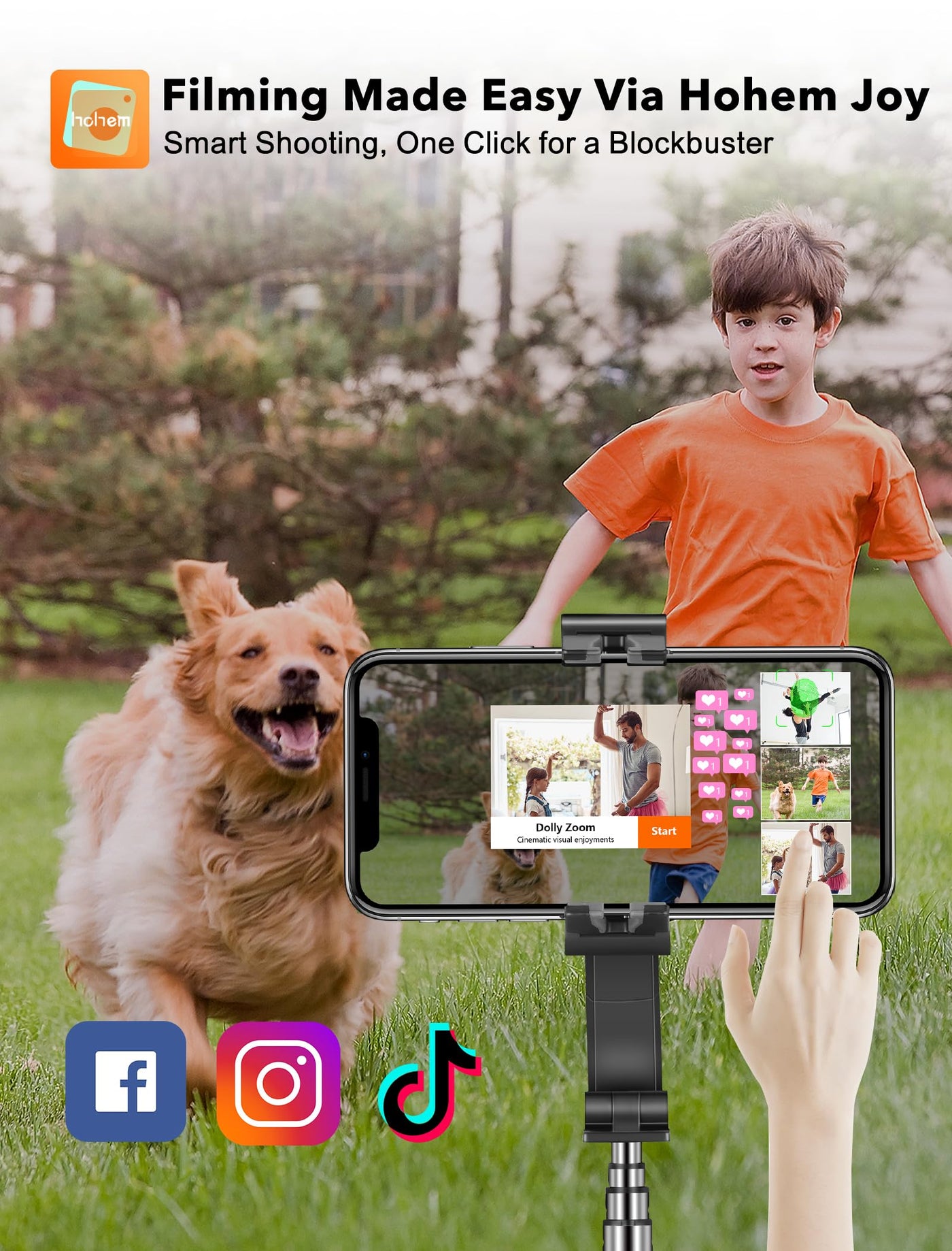 Hohem Is A Global Leading Gimbal Technology Company With Advanced Ability On Producing The Gimbal Stabilizer For Customers, Our Products Sell Tomore Than 50 Countries All Around The World. Bearing The Mission Of Makeing The Moment, Enjoy It, We Continually Develop And Improve Smartphonegimbal Stabilizers.Thus, We Proudly Introduce Hohem Isteady Q Versatile Selfie Stick. Small In Size, Big In Function, The Isteady Q Selfie Stick Is Always Ready To Amazeyou. This Extendable & Portable Phone Tripod Stand Combines 4 Various Functions, Including The Handheld Gimbal Stabilizer, Extendable Selfie Stick,Phone Tripod Stands, 360� Table Follow Mode.Thanks To The Smart Anti-Shake Stabilization System And Auto-Balance Technology, This Extendable Selfie Stick For The Phone Can Ensure The Phone In Ahorizontal Or Vertical Stage Remains Stable While Recording Video. Apart From The Built-In Tripod And Extendable 19.6 In Max Selfie Stick, This Handheldgimbal Is Also Equipped With A Detachable Remote, Which Can Control From Up To 33 Ft.Additionally, This Selfie Stick Tripod Provides A Wide Variety Of Interest Shooting Templates Within The Hohem Joy App For You To Choose From. You Caneasily Realize Cinematic Shooting Styles Such As Dolly Zoom, Inception, Cloneme, Slow Motion, And Time-Lapse Features With Only One Click. A Must-Have Selfie Stick Gimbal Tool For The Vlog, Youtube And Tiktok.