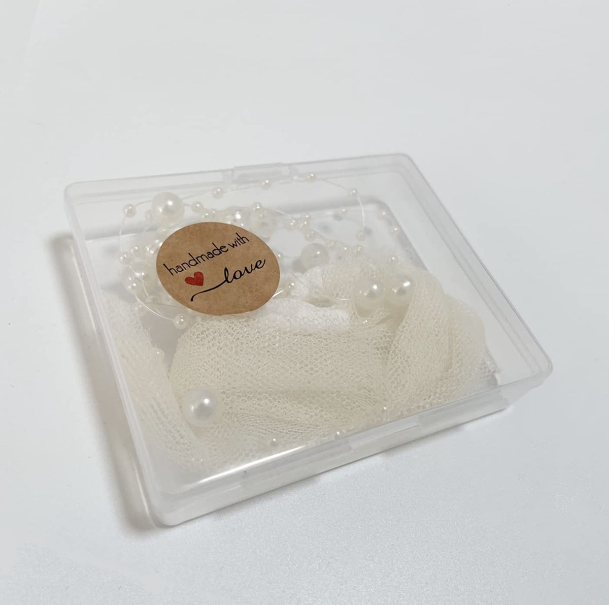 Q: What material is the pearl headband made of?A: The headband features faux pearls combined with soft ribbon or gauze, ensuring comfort for your baby during photoshoots.