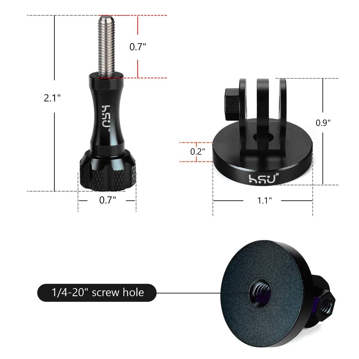 Hsu Aluminum Alloy Metal Gopro Tripod/Monopod Mount With Aluminum Thumbscrew For Gopro Hero 13, 12, 11, 10, 9, 8, 7, 6, 5, 4, 3+, 3, 2, 1 Hd, Akaso Campark And Other Action Cameras (Black)