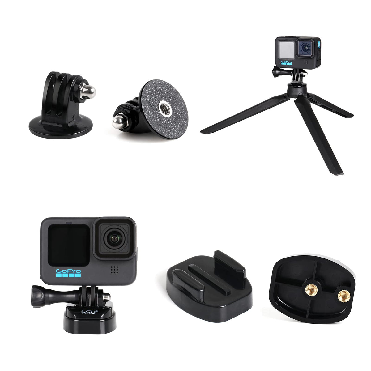 Hsu Basic Adapter Grab Bag For Gopro 13Pcs Kit Including Quick Release Buckle, J Hook Buckle, 3 Way Pivot Arms, Tripod Mount, Curved Extension Arm And Thumbscrews