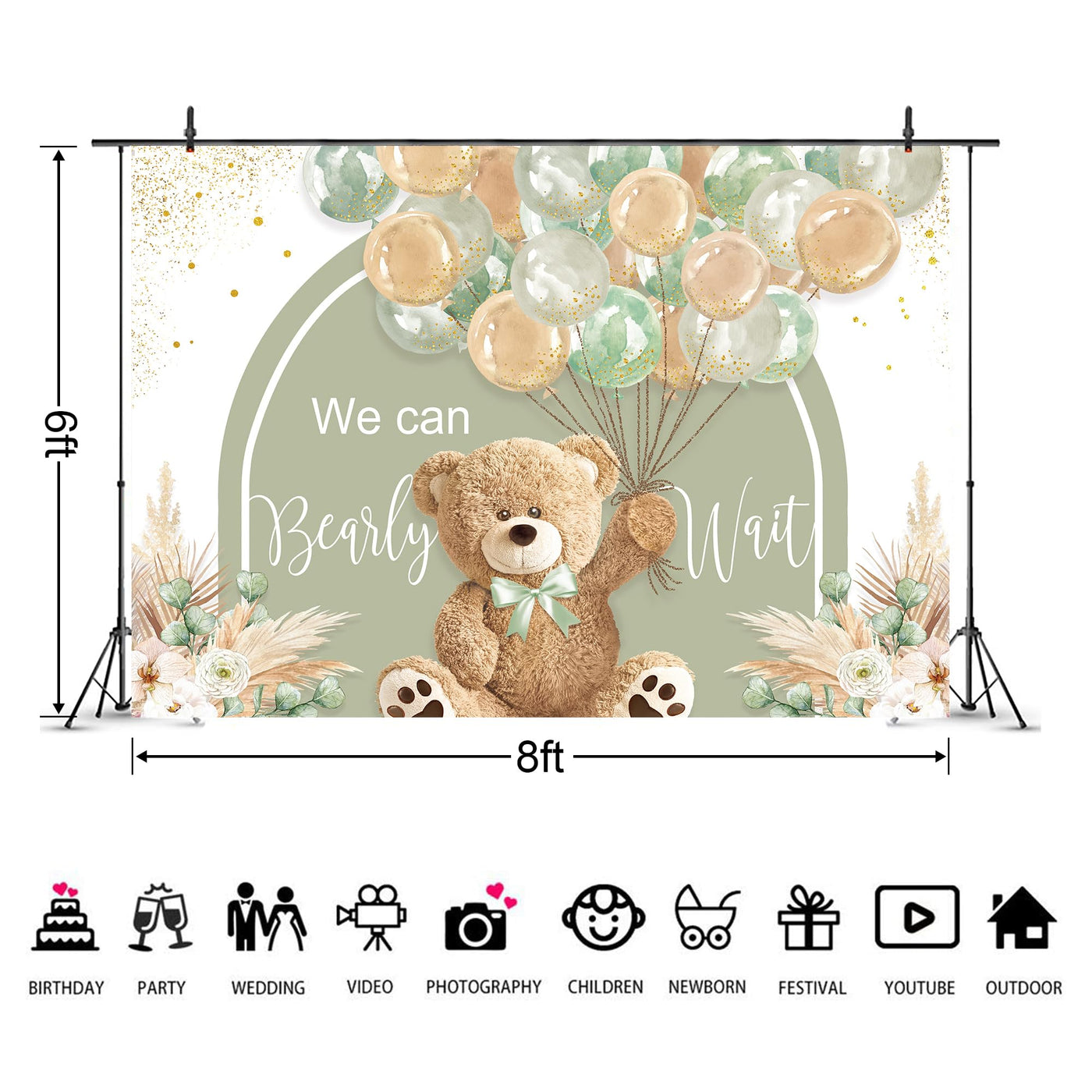 Q: What occasions is the backdrop suitable for?A: The Imirell Bear Baby Shower Backdrop is perfect for various occasions, including birthday parties, newborn photography, children's events, and as a video backdrop.
