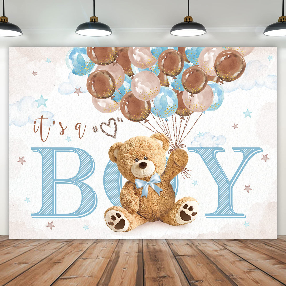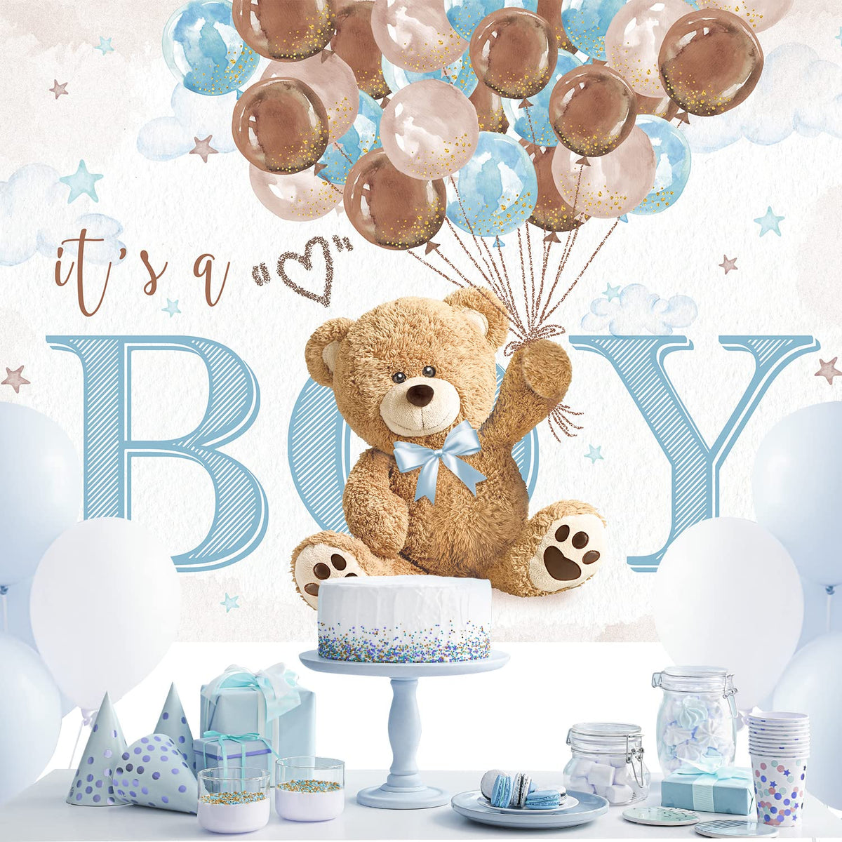 Imirell Boys Bear Baby Shower Backdrop 8Wx6H Feet It S A Boy Cute Blue Brown Watercolor Lovely Cartoon Balloons Polyester Fabri