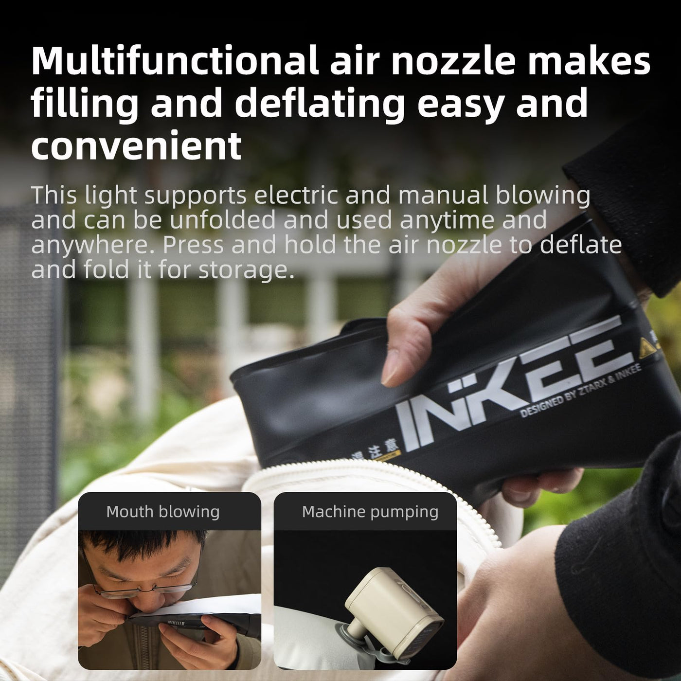 Multifunctional Air Nozzle: This light features a user-friendly air nozzle that supports both electric and manual inflation. It can be quickly deflated and folded for easy storage and transportation.