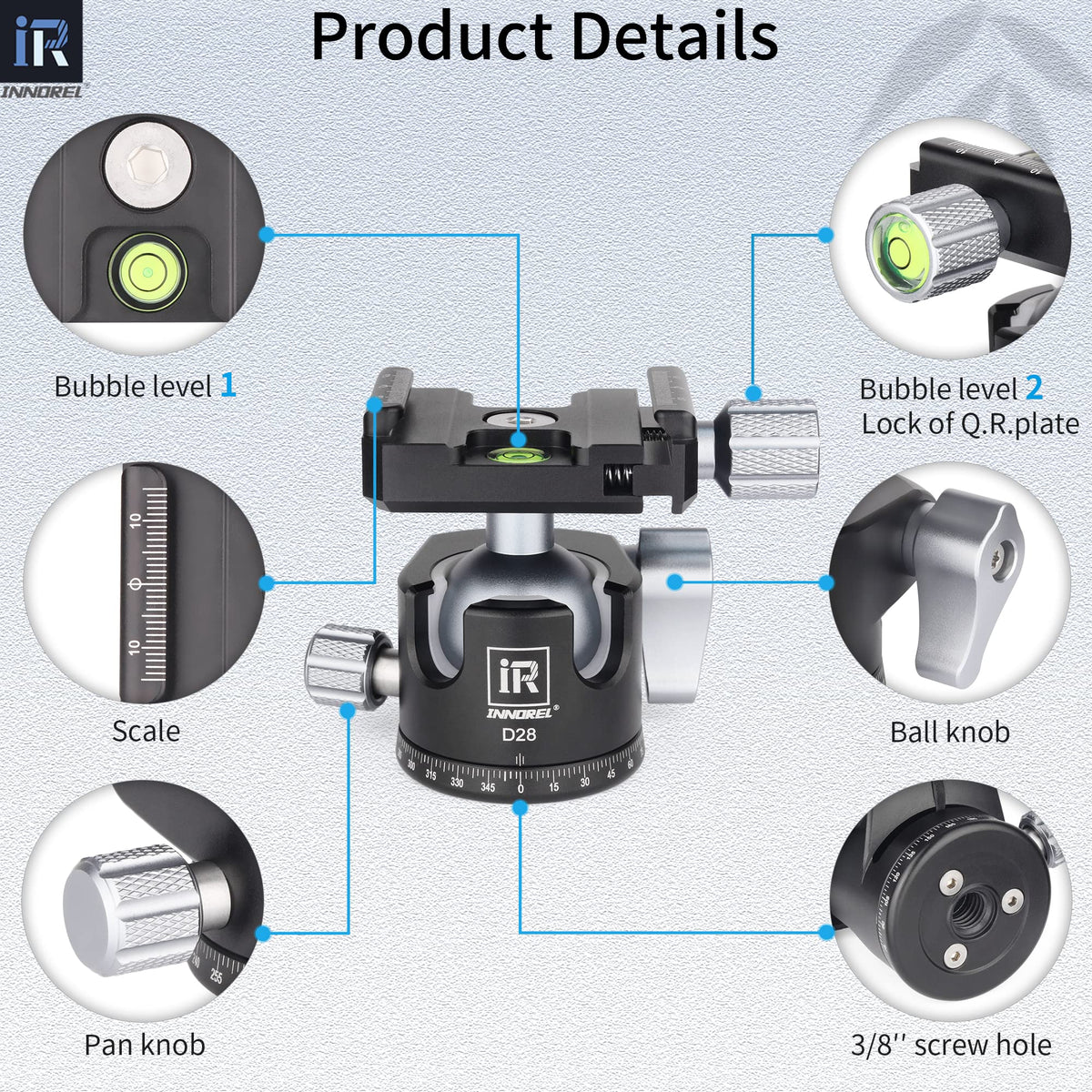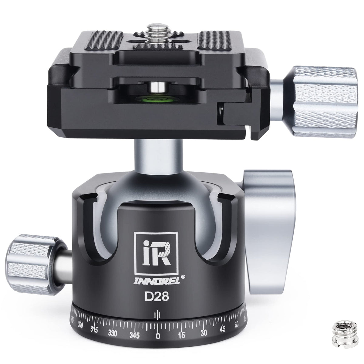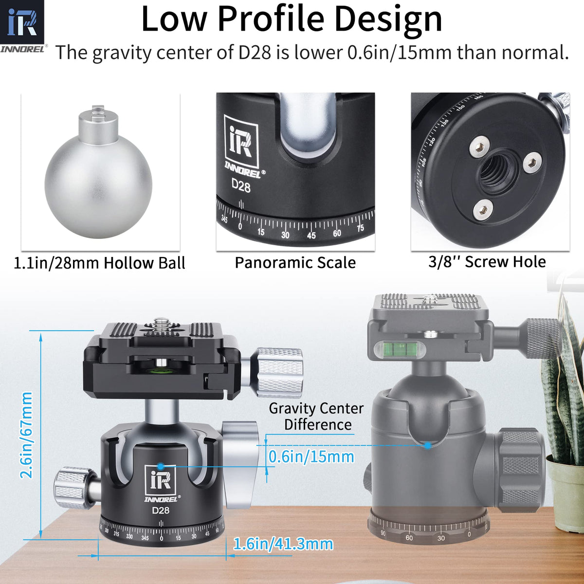 Innorel D28 28Mm Low Profile Tripod Ball Head Professional All Metal Cnc 360� Panoramic Camera Tripod Head For Monopod,Dslr Cameras,Camcorder,Dv With 1/4' Arca Swiss Quick Release Plate Load 22Lb/10Kg