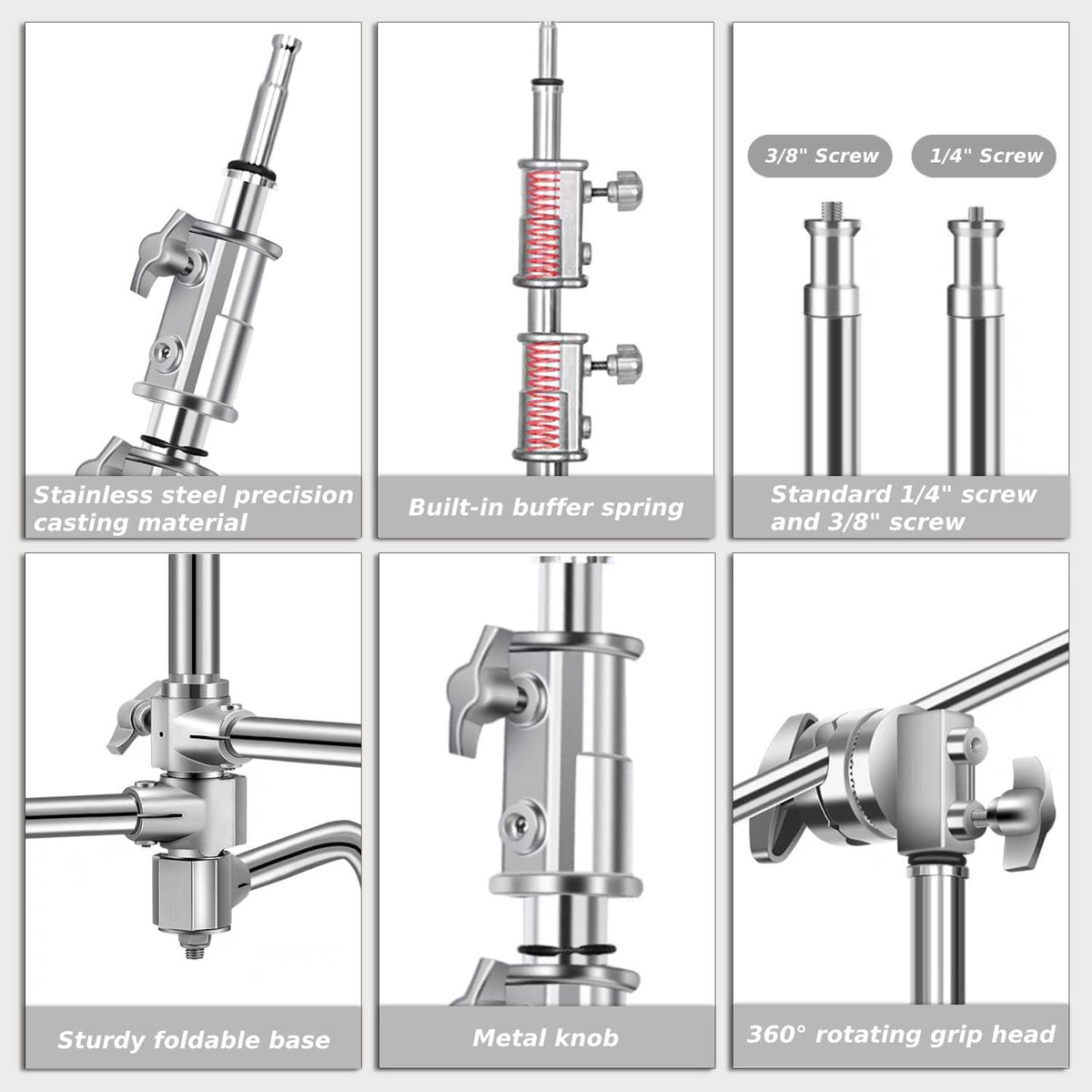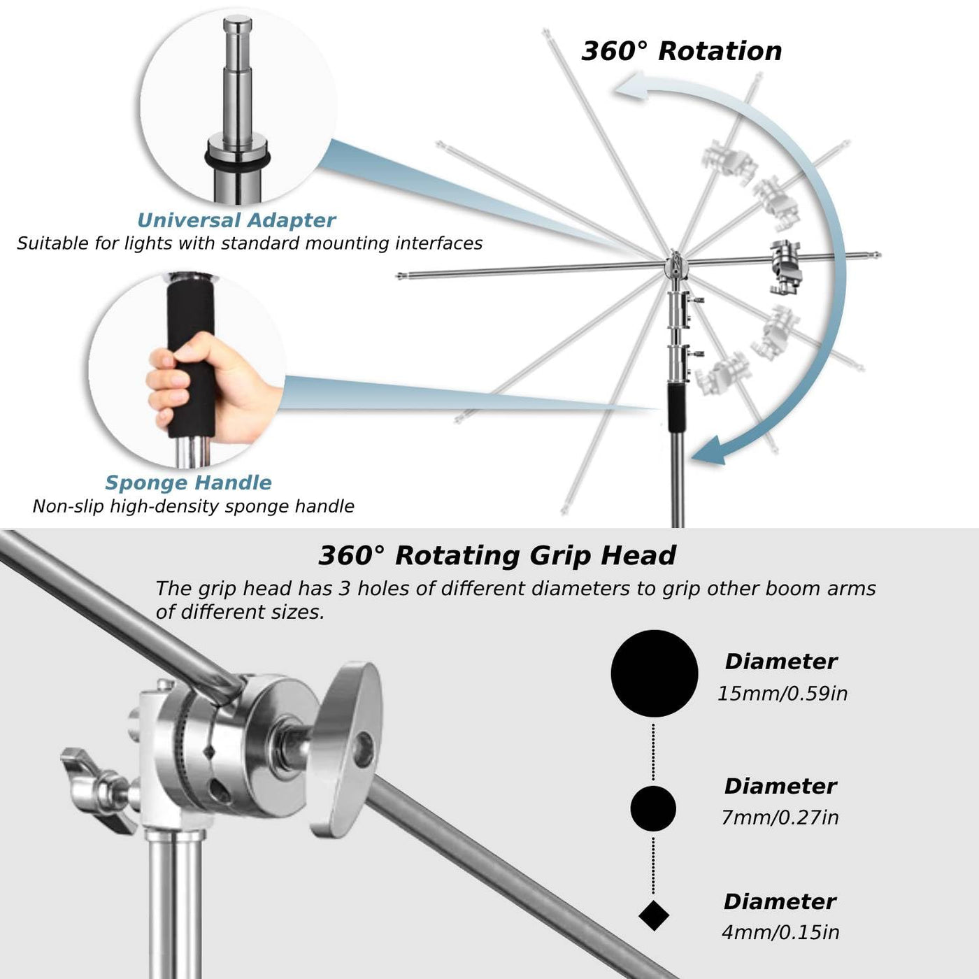 Itotin Heavy Duty C Stand With Boom Arm, Stainless Steel Heavy Duty Photography Light Stand, Adjustable Height 4.9Ft 10.8Ft, Wit