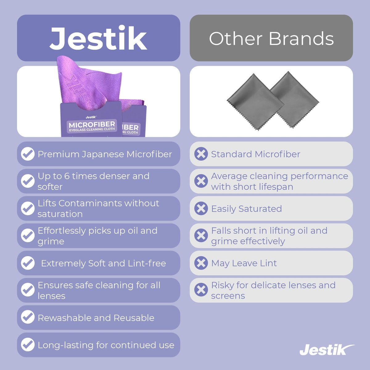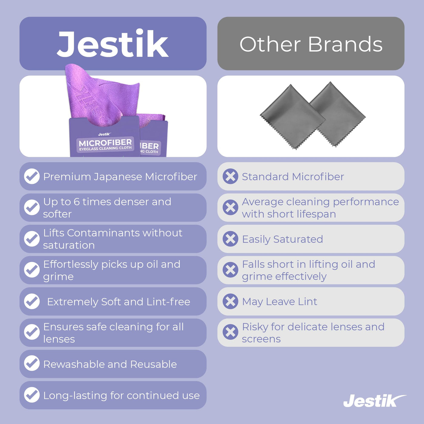 Clear Vision, Effortless Cleaning Ensure crystal-clear lens wipes with our microfiber cloth for glasses. This superior eyeglass cleaning cloth utilizes advanced Japanese microfiber technology to gently yet effectively remove dirt, smudges, and fingerprints from glasses. Designed as a versatile lens wipe, it's convenient for eyeglasses, sunglasses, and more. Experience the convenience of a microfiber cleaning cloth for glasses that delivers spotless results every time. Unrivaled Versatility More than just a microfiber lens cleaning cloth, this remarkable accessory excels at safeguarding all your delicate surfaces. Ideal as a microfiber cleaning cloth for electronics, it gently cleans camera lenses, phone screens, tablets, and even car mirrors without scratches. The exceptional cleaning cloth for eyeglasses also doubles as a superb microfiber cloth for clear vision on the go. Meticulous Care for Every Surface Our thoughtfully crafted glasses cleaner cloth ensures meticulous cleaning for all your prized possessions. The ultra-soft, lint-free glass microfiber cleaning cloth is safe for LCDs, laptops, gaming gear, and more. This versatile microfiber screen cleaning cloth delivers gentle yet effective lens cleaning capabilities, leaving surfaces pristine. Each reusable cloth is conveniently sized and packaged for easy use. -Superior quality microfiber for cleaning -Versatile for glasses, screens, and more -Designed for delicate surfaces -Enhanced protection and freshness -Easy to use and reuse
