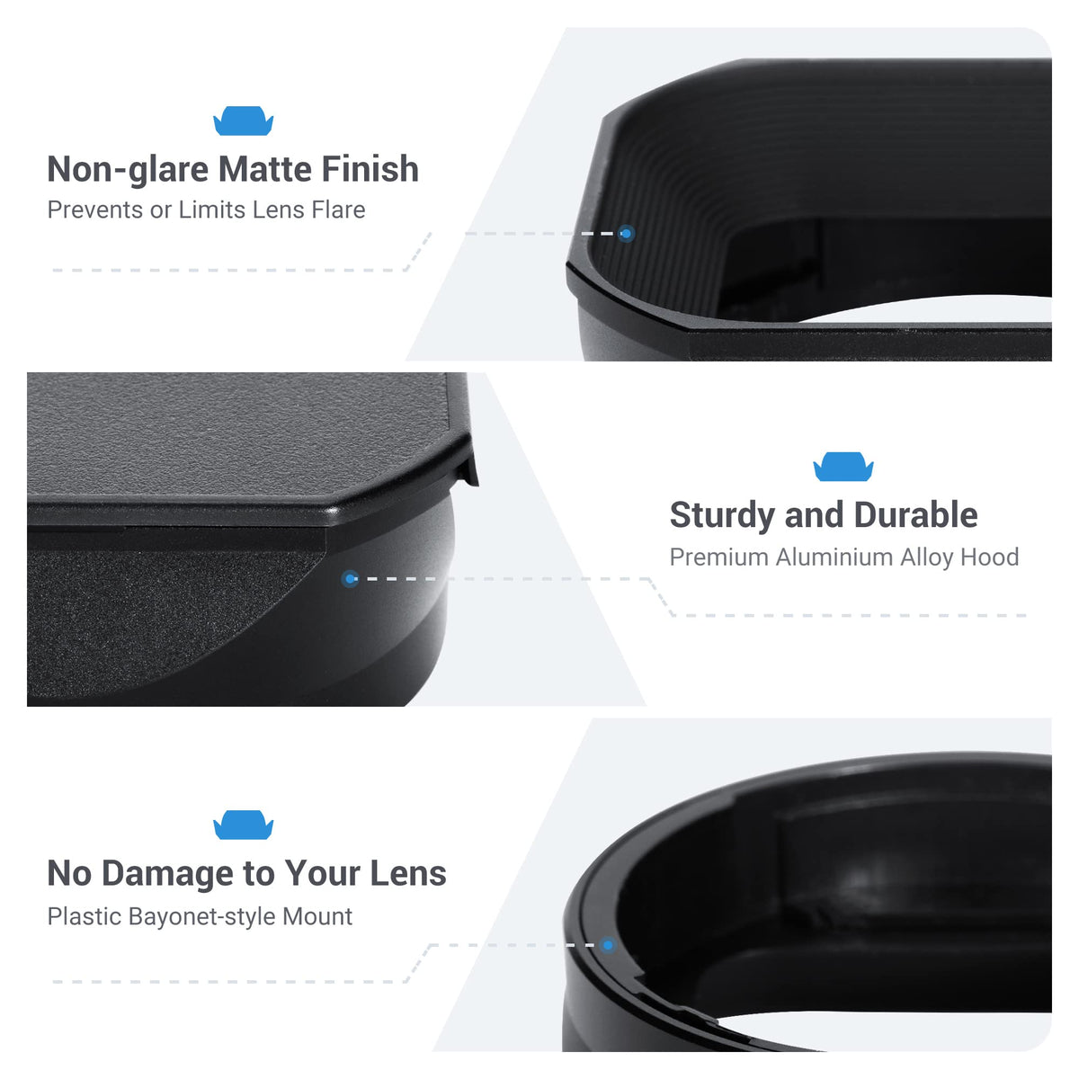 Jjc Metal Square Lens Hood Shade For Fuji Fujifilm Xf 35Mm F/1.4 R Lens, Xf35Mm F1.4 R Lens Hood, With Protective Lens Hood Cap,