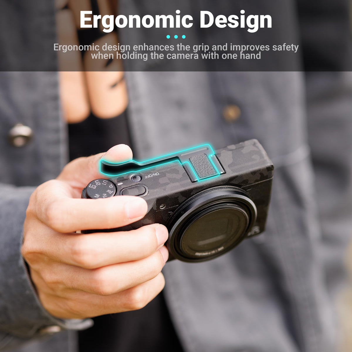 Dedicated To The Ricoh Griii & Griiix Camera, This Thumb Grip Improves The Ergonomics And Comfort While Shooting. This Thumb Grip Slides Into The Camera'S Hot Shoe And Makes It Possible To More Comfortably Rest One'S Thumb Against The Camera Body And Enjoy A Steadier And More Secure Grip, Especially During One-Handed Operation. The Thumb Grip Is Constructed From Metal For Durability.Compatibility: Fit For Ricoh Gr Iii, Gr Iii Hdf, Gr Iiix & Gr Iiix Hdfspecification: Materials: Aluminum Alloyitem Size: 2.5X0.9X0.4 Inchesnet Weight: 0.2 Ouncesgross Weight: 0.5 Ouncescolor: Blacknote* The Camera Is Excluded.