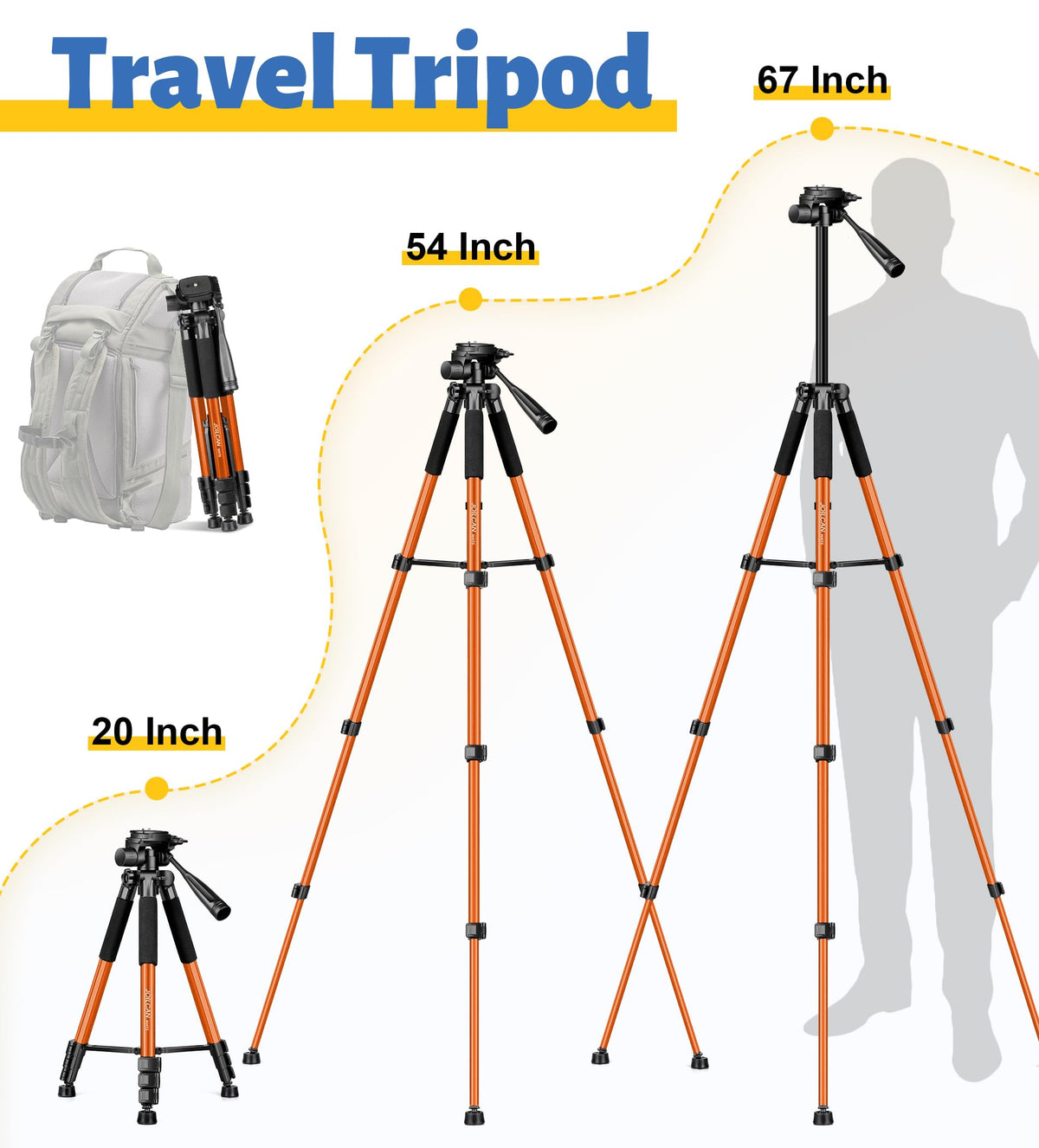 Joilcan Tripod For Camera, Camera Tripod 67'' Heavy Duty Tripod, Phone Tripod For Video Recording Photo Vlog, Aluminum Camera Tr