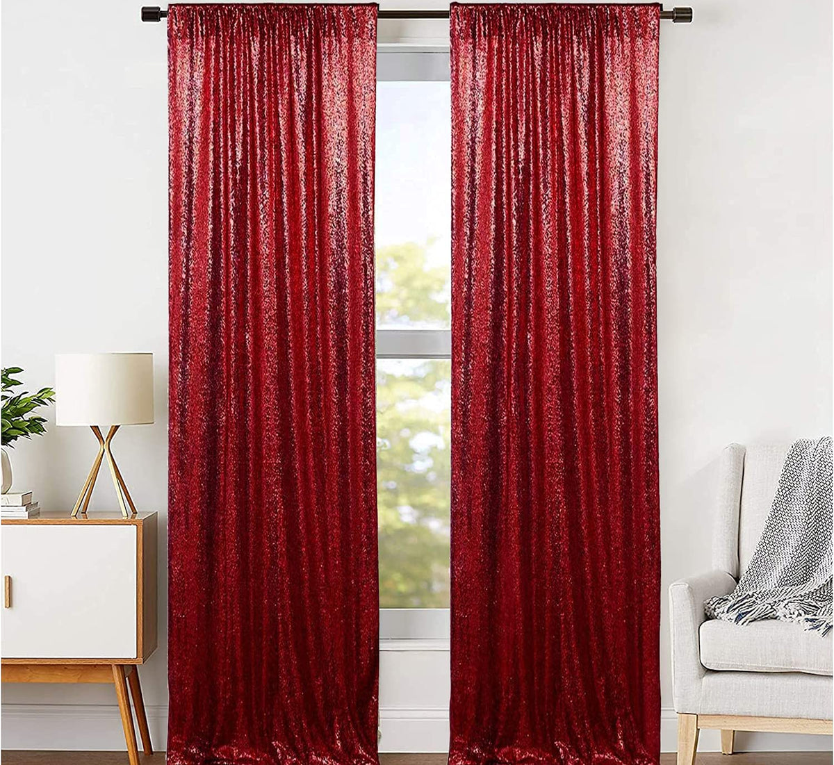 Jyflzq Burgundy Sequin Backdrop Curtains 2Ft X 8Ft 2 Panel Glitter Photo Booth Backdrops Sparkly Photography Background Drapes F