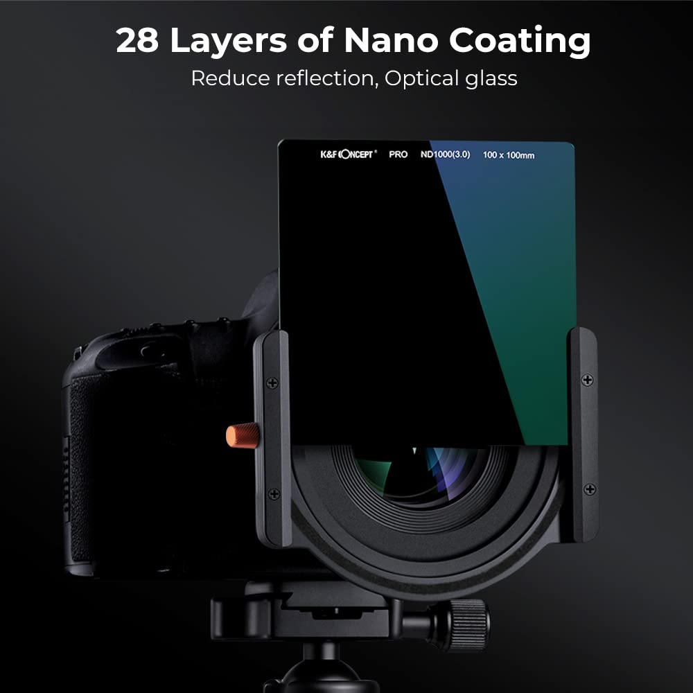 K&F Concept 100X100Mm Square Nd Filter Kit Nd1000 (10 Stop) + 1X Filter Holder + 8 X Filter Rings With 28 Multi Layer Coatings C