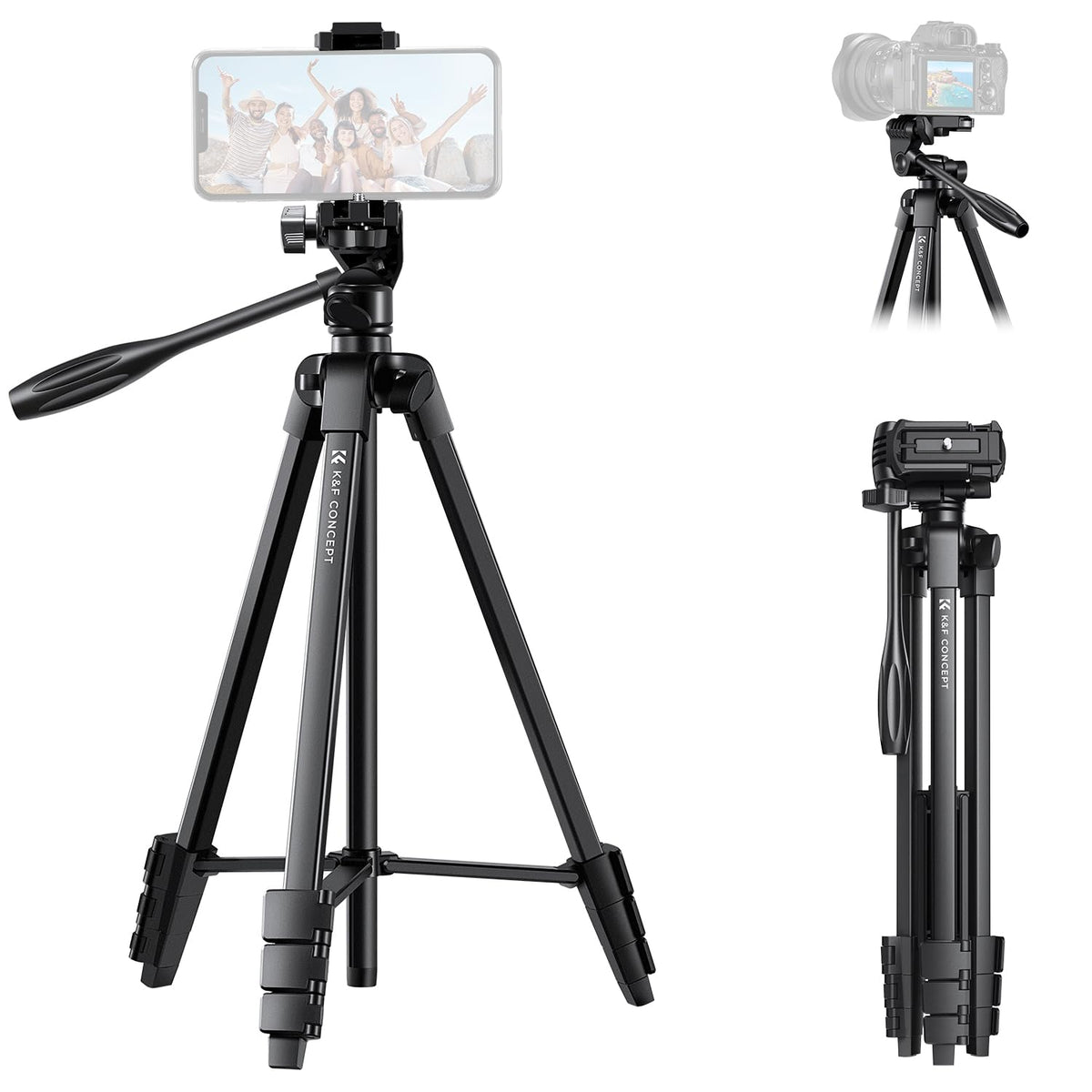 K&F Concept 60'' Camera Phone Tripod Stand, 1.34 Lbs Ultra Lightweight With Remote And Cellphone Holder, 360� Panorama, Cold Shoe Interface, Portable For Travel B174A1