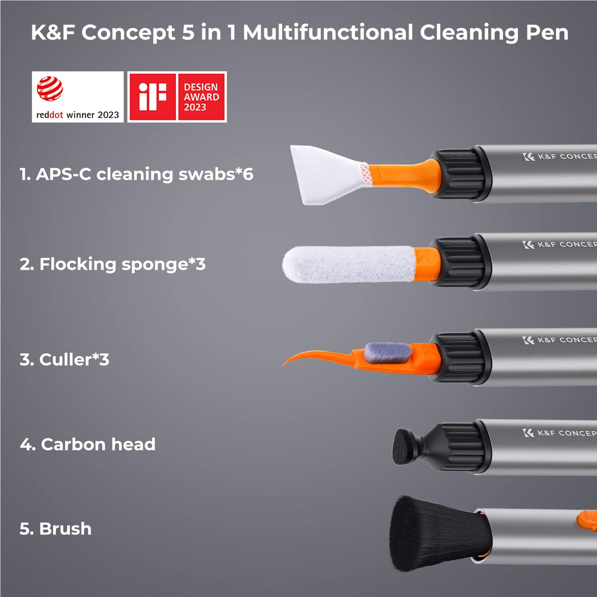 K&F Concept Lens Cleaning Pen Kit For Aps C Sensors, Multi Function Cleaner Kit For Airpods Pro, Earbuds, Bluetooth Earphone Hea