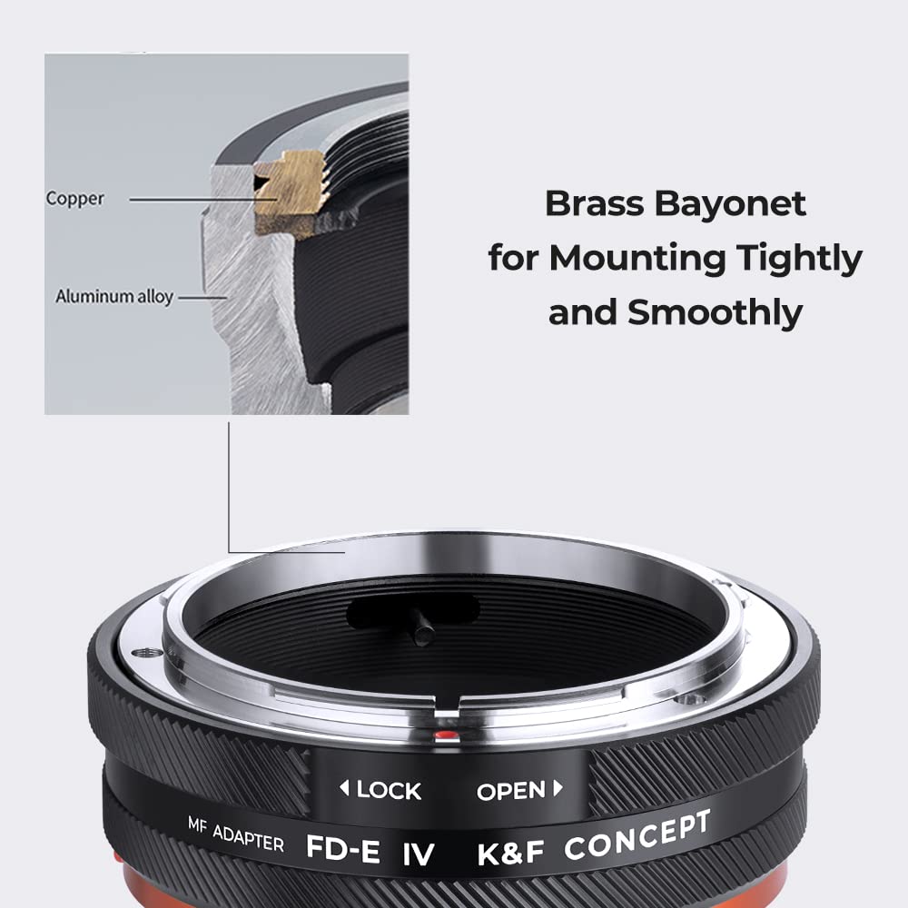 K&F Concept Lens Mount Adapter Fd Nex Iv Manual Focus Compatible With Canon Fd & Fl 35Mm Lens And Sony E Mount Camera Body