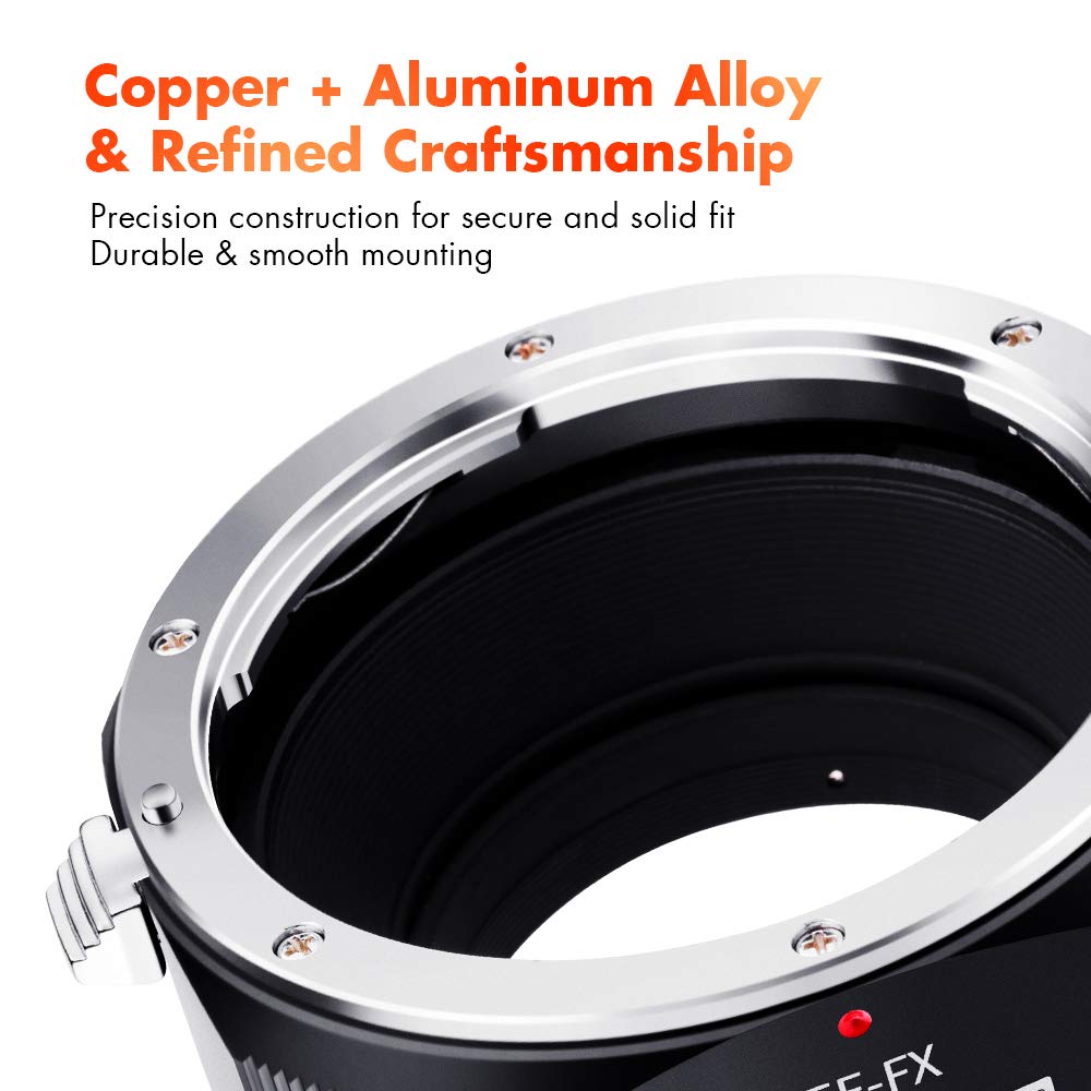 ?Function? With This Adapter, You Can Use Eos Ef / Efs Lens On A Fuji Fx Mount Camera Body, Such As X-Pro1 X-E1 X-E2 X-A1 X-M1 X-T1. | ?Features? Supports Manual Control, Manual Focus, Manual Exposure And Focus To Infinity; Red Dot Mark, High Precision, Easy To Install And Remove; | ?Material? All-Metal Design; Hardened Anodized Aluminum Construction,Matting Varnish Inside To Avoid Light Reflection; | ?Cameras Compatibility? Compatible With Fuji Fx Mount Camera X-Pro1 X-E1 X-E2 X-A1 X-M1 X-T1. | ?Note? When Using The Adapter Ring For The First Time, Please Turn On The Option 'Release The Shutter Without Lens' In The Fuselage Menu, Otherwise The Lens Will Not Be Recognized And The Shutter Cannot Be Taken To Take Pictures.