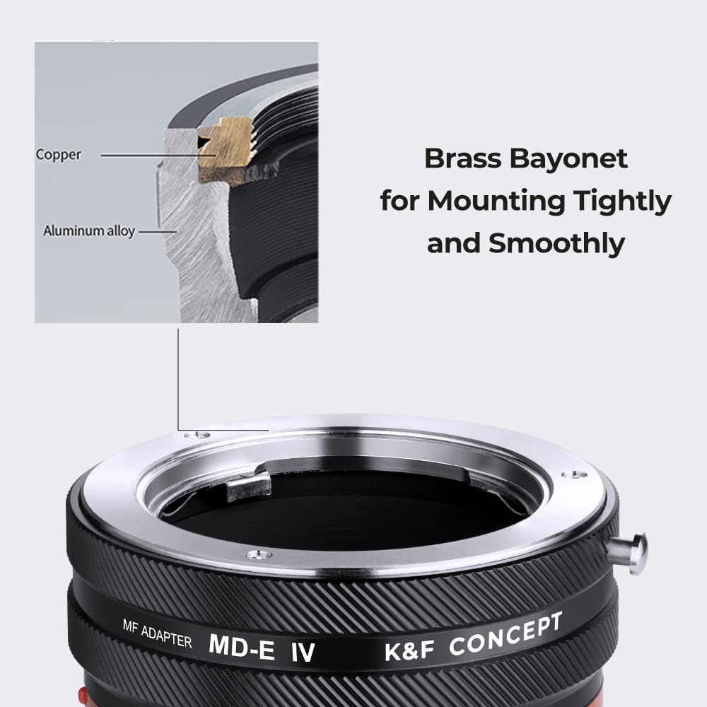 K&F Concept Lens Mount Adapter Md Nex Iv Manual Focus Compatible With Minolta Rokkor (Sr/Md/Mc) Lens And Sony E Mount Camera Body