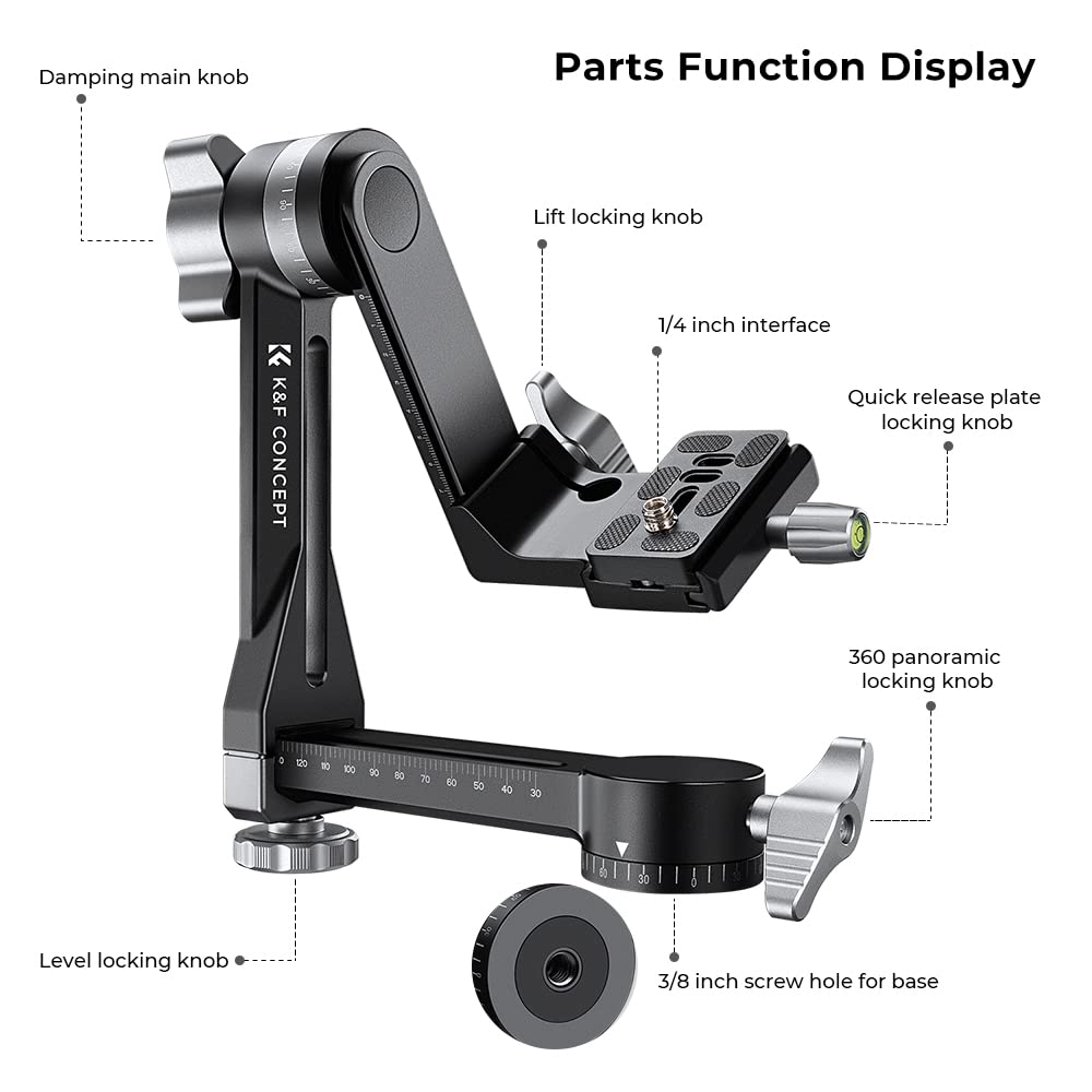 K&F Concept Upgraded Gimbal Tripod Head, Exclusive Lubricant, All Cnc Aluminum Alloy Gimbal Head, Precise Horizontal And Vertica