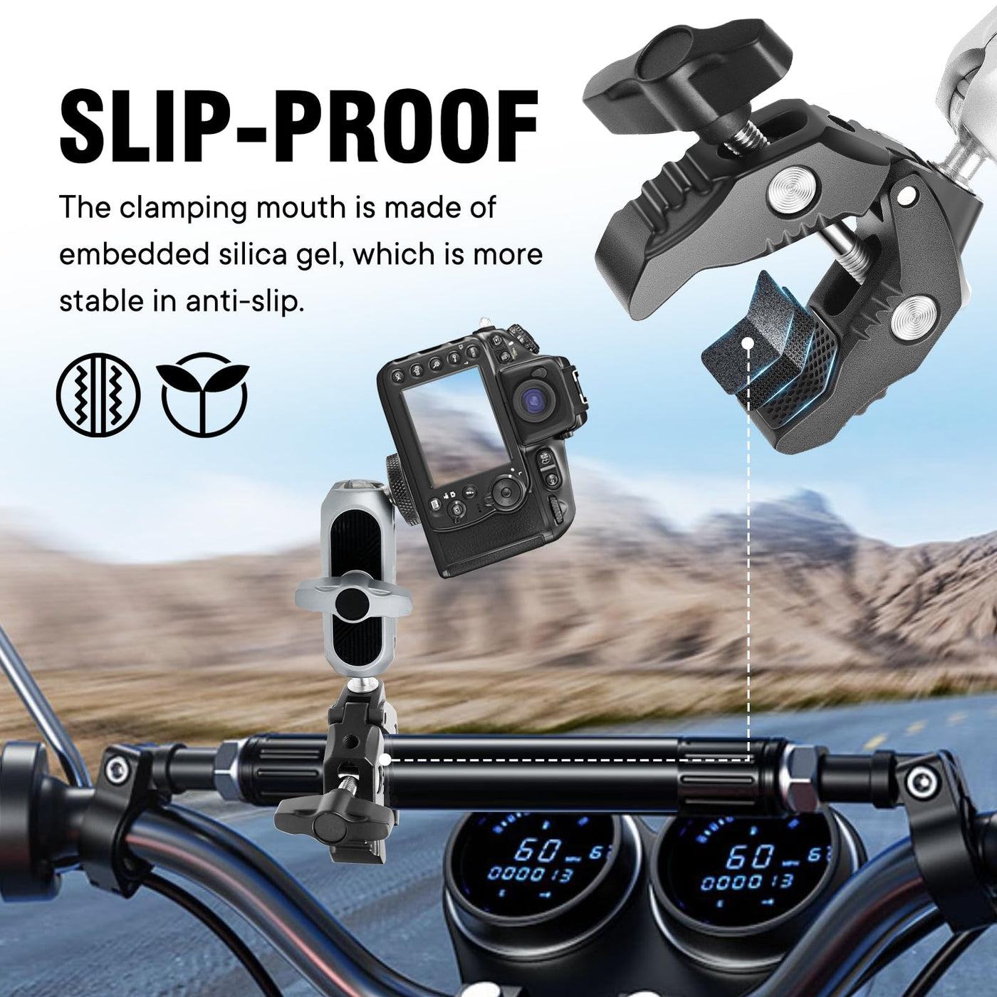 Kalofaye Aluminum Alloy Camera Mounts Clamp Mount Bicycle Handlebar Adapter Mount With Dual 360Rotatable Ball Head With Adapter