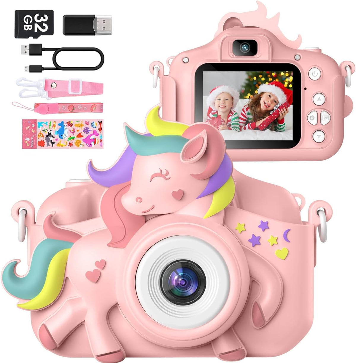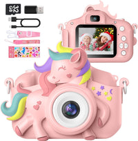 New Upgrade Kids Camera & Gifts For Kids: Equipped With Camera 2-Inch Super Ips Screen 20 Million Pixels Hd Lens, 8X Digital Zoom, 28 Frames And 6 Filters, 15 Different Built-In Frame Photo Effects, Let Children Experience The Fun Of Multiple Take Modes. Our Children Camera Is One Of The Great Birthday And Holiday Gift. | Long Lasting Toy Camera: Built-In 1000 Mah Rechargeable Li-Ion Battery, Single Full Charging Can Maintain Camera Working 2-4 Hours, Kids Can Enjoy The Fun Of Taking Pictures Without Worrying About The Camera'S Battery Life, And We Have Equipped The Camera With A Usb Charging Data Cable. | Portable & Anti-Drop Soft Silicone Case: The Size Of Our Kids Camera Is Very Suitable For Children To Hold, And It Can Be Attached With The Lanyard(Included) To Hang On The Neck. The Children Camera Adopts Shockproof Materials And With Soft Cartoon Themed Silicone Shell To Prevent The Falling And Breaking, Its Cute And Useable. | High-Speed Memory Card (Included) Maximum, Which Can Support Store More Than 4000 Hd Photos. In Addition, We Will Give You A Card Reader In The Package, You Can Read The Digital Content In The Memory Card Through The Card Reader. | Three Puzzle Games: Our Kids Toy Camera Has Three Puzzle Games Installed, Pushing Boxes, Greedy Snakes, Tetris, To Inspire Children'S Creativity And Children'S Intelligence.