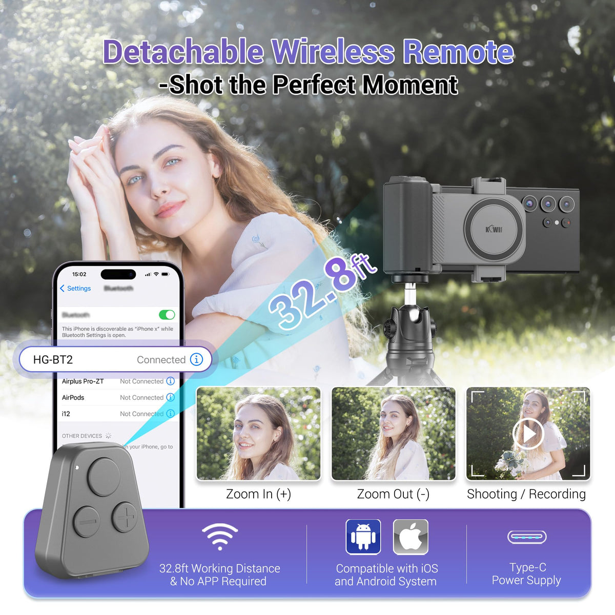 Kiwifotos Universal Phone Camera Grip Phone Tripod Mount With Remote Control & Cold Shoe Adapter For Iphone 16 15 Pro Max Samsun