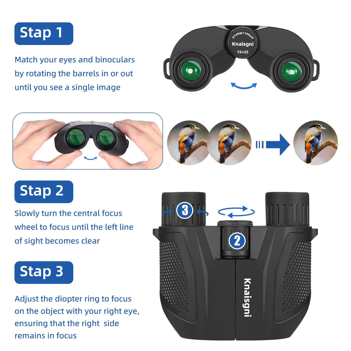 Q: What is the warranty policy for these binoculars?A: Knaisgni offers a 3-year warranty on their binoculars, along with all-day customer service. This commitment ensures that you can reach out for assistance if you encounter any issues or have questions about your product.