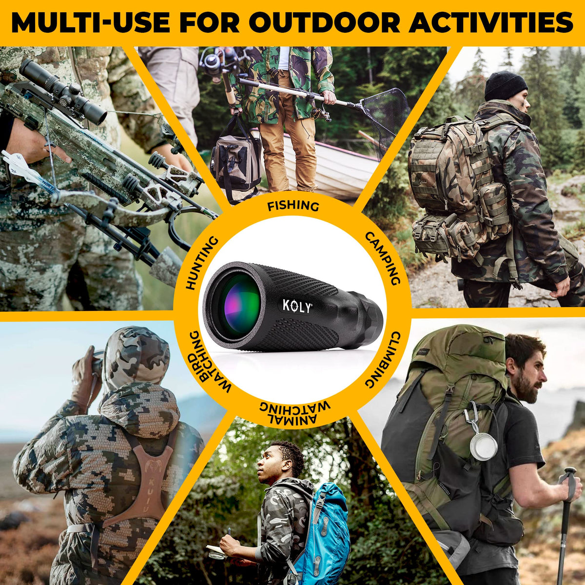 Observe Natures Finest Creations With The Aid Of A Bak-4 Monocular Telescope From Koly. Kolys Compact Monocular Scope Is A Pocket-Sized Scope Designed For Adventurers Looking To Spot Scenic Views, Rare Wildlife, And More. Crafted With A Bak-4 Prism For Incredible Clarity And Brightness, Each Travel Monocular Is The Ideal Choice For Those Who Enjoy Camping, Birding, Hunting, Hiking, Birdwatching, And More. With An Ultra-Durable Rubber Body And Snake Skin Grip, Users Can Easily Traverse Through Natures Harshest Elements While Spotting Rare Sights And Species. Thanks To The Extremely Light-Absorbent Prism, Users Can View Sights In Dark, Low-Light, And Bright Settings With The Device Designed For Day And Night. Unlike Large And Bulk Competitors, Kolys Compact Monocular Scope Can Effortlessly Be Held And Operated With One Hand. As A Result, The Lightweight Monocular For Adults Can Also Double As A Monocular For Kids, The Elderly, And Those With Physical Limitations.