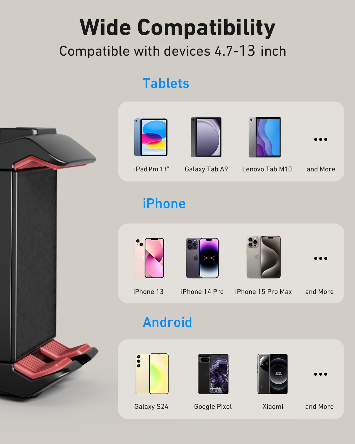 The Kraftgeek Phone & Ipad Tripod Mount Is Designed To Fit A Wide Range Of Devices, Securely Holding Cell Phones And Tablets With Widths From 3.54 To 8.46 Inches And Sizes From 4.7 To 13 Inches. It Supports Popular Models Like Ipad Pro, Ipad Air, Ipad Mini, Samsung Galaxy Tab, Lenovo Tab, Iphone 15 Pro, Iphone Mini, And Galaxy S24 Ultra. Featuring An Expand Button And Soft Cushion Pads, The Kraftgeek Tripod Mount Adapts To Different Device Sizes, Providing A Secure Hold For Both Smartphones And Tablets. This Makes It An Excellent Choice For Phone Or Ipad Tripod Mount Setups. With A 180 Adjustable Adapter And 360 Rotation Knobs, You Can Easily Find The Optimal Viewing Angle For Any Task, Whether It'S Reading Music Sheets, Recording, Or Streaming Vide. Enhance Your Recordings With The Built-In Cold Shoe Mount, Perfect For Attaching Led Lights, Microphones, And Other Accessories. This Feature Ensures You Achieve Professional-Quality Results Every Time. The Kraftgeek Tripod Mount Offers Multiple Installation Methods, Making It Easy To Attach To Kraftgeek Sheet Music Stands With A Standard 1/4'' Screw Connector. Its Also Compatible With Tripods, Selfie Sticks, Microphone Stands, And Ring Light Stands, Giving You Flexible Setup Options. Upgrade Your Device Setup With The Kraftgeek Phone & Ipad Tripod Mount, Perfect For Both Professional And Casual Use.