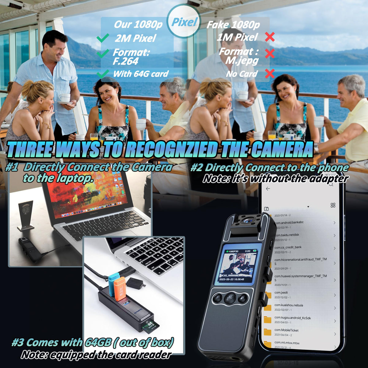 This Body Camera With Audio And Video Recording Is Designed For Personal Civilians, Police Law Enforcement, Security Guards, And More. It Features A 180-Degree Rotating Lens, Allowing You To Capture A Wide Range Of Scenes, And A 64Gb Body-Worn Camcorder, Providing Ample Storage Space For Your Recordings. With Its High-Definition 1296P Resolution, This Body Camera Ensures Clear And Detailed Recordings Both During The Day And Night. The Camera Also Features A Night Vision Function, Allowing You To Record In Low-Light Environments.