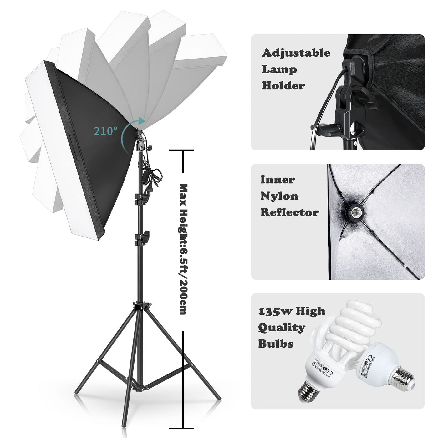 Kshioe Photography Softbox Lighting Kit, Youtube Starter Kit, Photo Equipment Soft Studio Light With Light Stands And Convenient