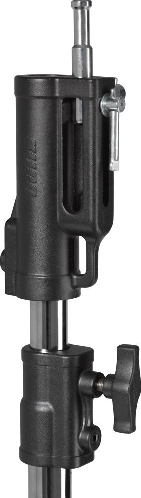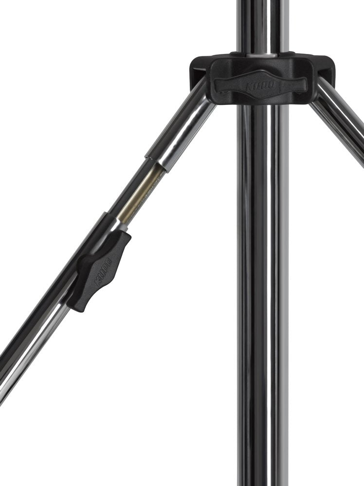 The Master Combo Hd Stand Is A Chrome Plated Steel Combo Stand With A Load Capacity Of 88.2 Lbs (40 Kg). Combo Stands Get Their Name Because Of Their Unique Head Design. It Features The Triple Function Universal Combo Head With Both 1/8' (28Mm) And 5/8' (16Mm) Receivers Plus A Multi-Direction 5/8' (16Mm) Stud Giving You Great Versatility When It Comes To Mounting Options. Also Features A Leveling Leg That Enables The User To Extend One Leg More Than The Others To Level Out The Stand On An Incline Or Uneven Terrain. Each Riser Is Spring Cushioned As A Safety Feature To Protect Lighting Fixtures From A Sudden Drop If The Locking Collar Becomes Loose.