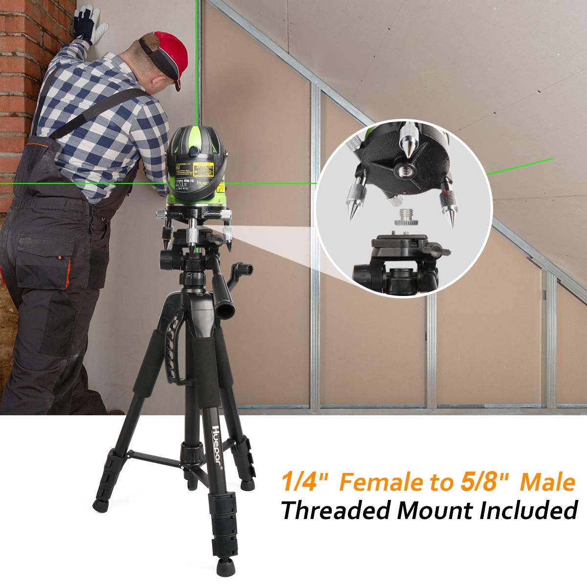 Laser Level Tripod, Huepar 56 Inch Extendable Height Tripod Use With Line Lasers, Point Lasers, Laser Distance Measures, 1/4' And 5/8' Thread Mount, Multi Function Hook, Non Skid Feet, Tpd14