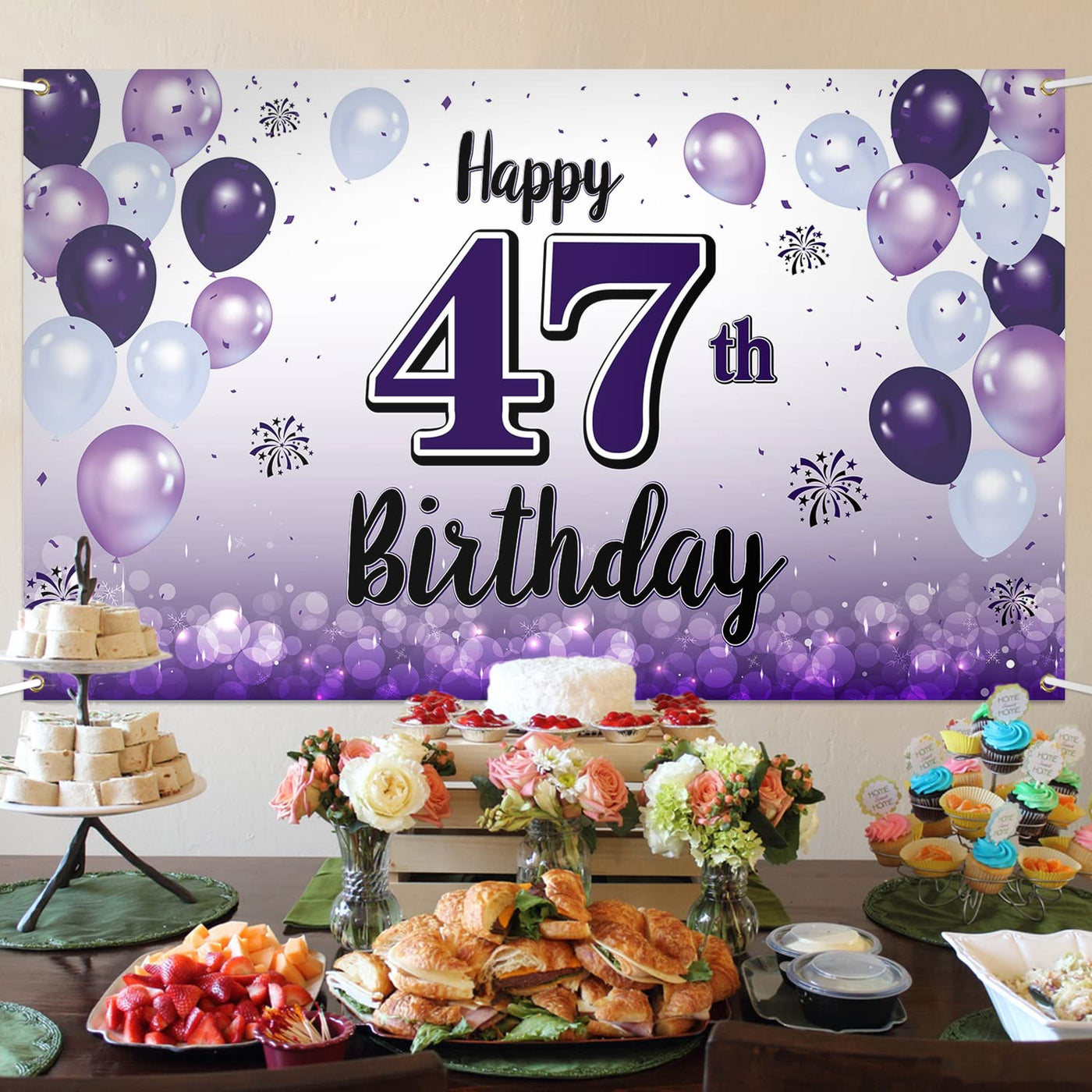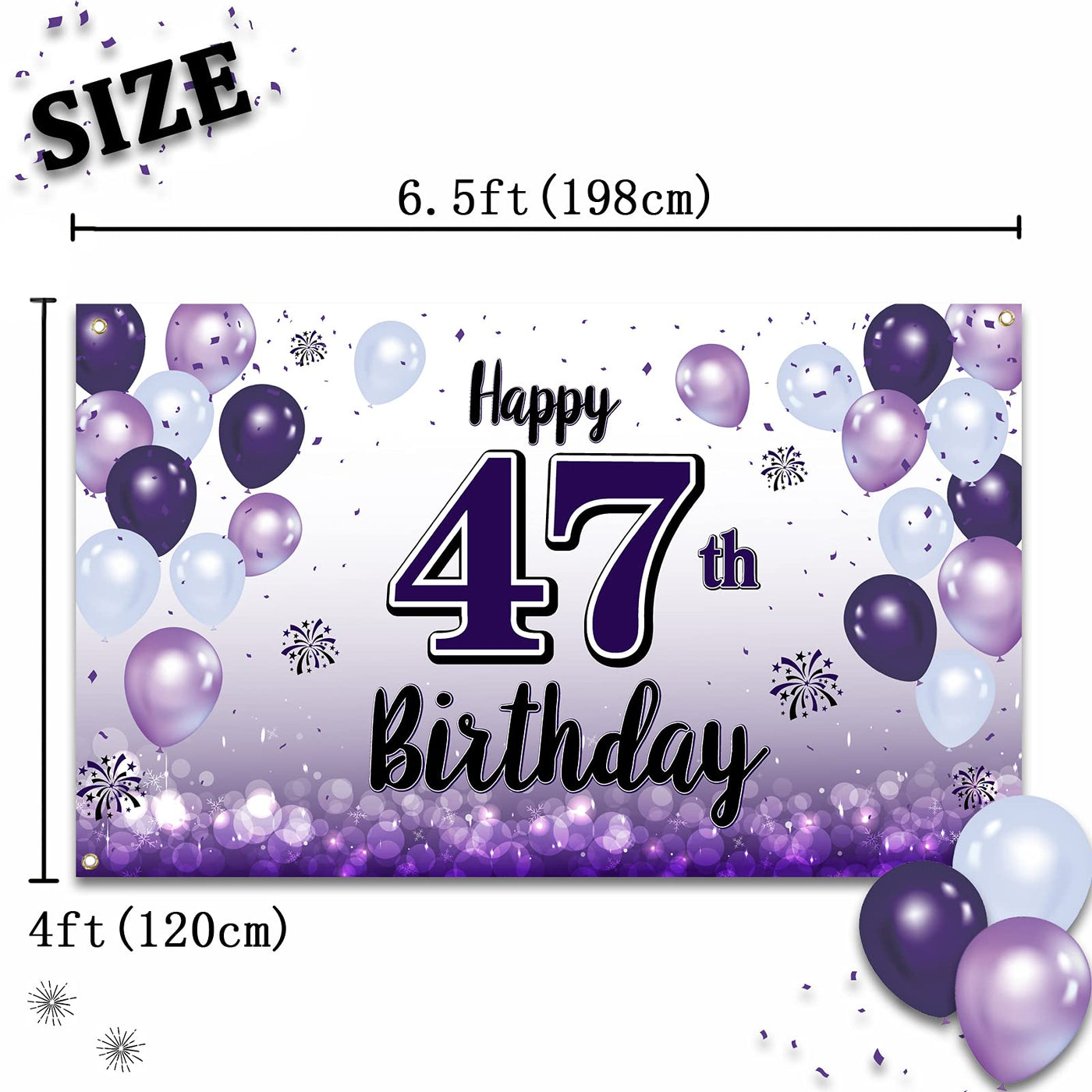 Laskyer Happy 47Th Birthday Decorations,47Th Purple Balloon Large Birthday Banner Backdrop Sign,47 Years Old Bday Party Supplies