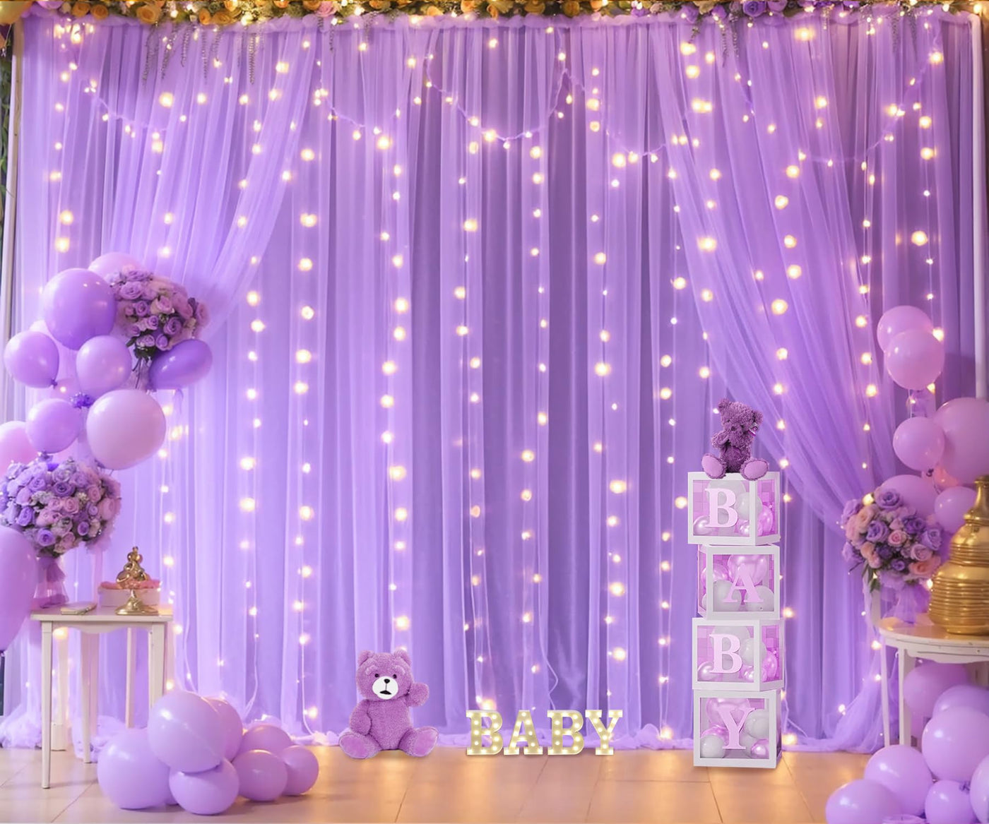 Lavender Sheer Backdrop Curtain With Led Lights For Baby Shower Girls Wedding10Ft X 10Ft Lavender Tulle Backdrop Curtain For Bri