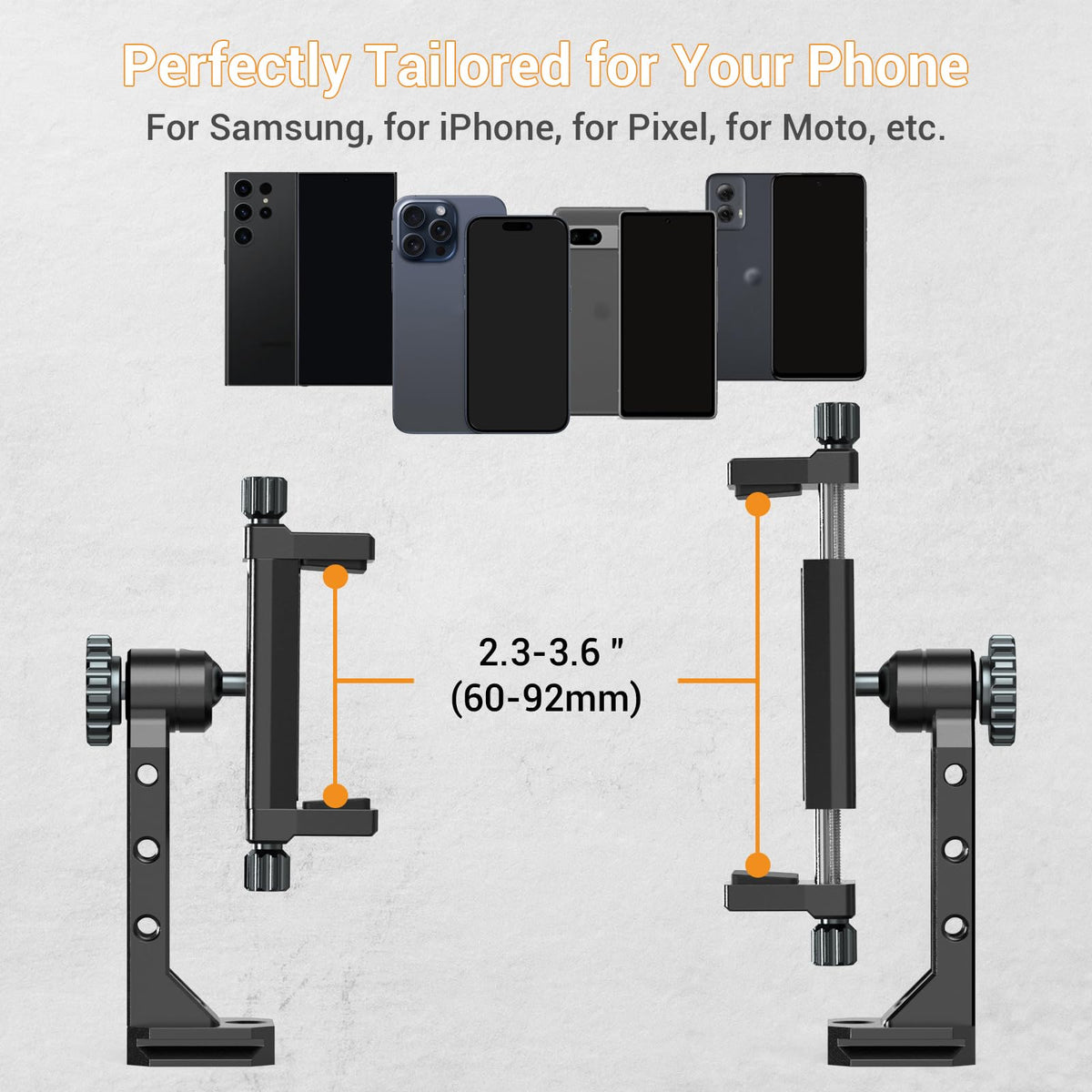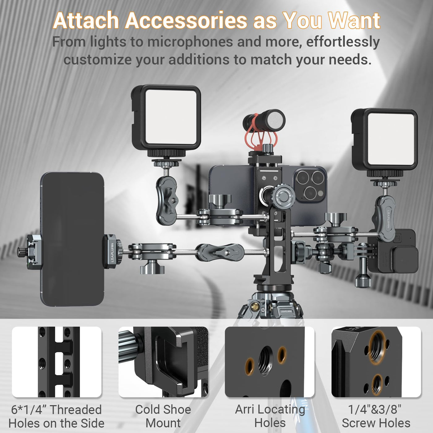 Leaplumin Metal Phone Mount For Tripod With 2 Cold Shoes & Arca Port,Phone Holder Stand With 4 * 1/4'' Screw Mount,Support Verti
